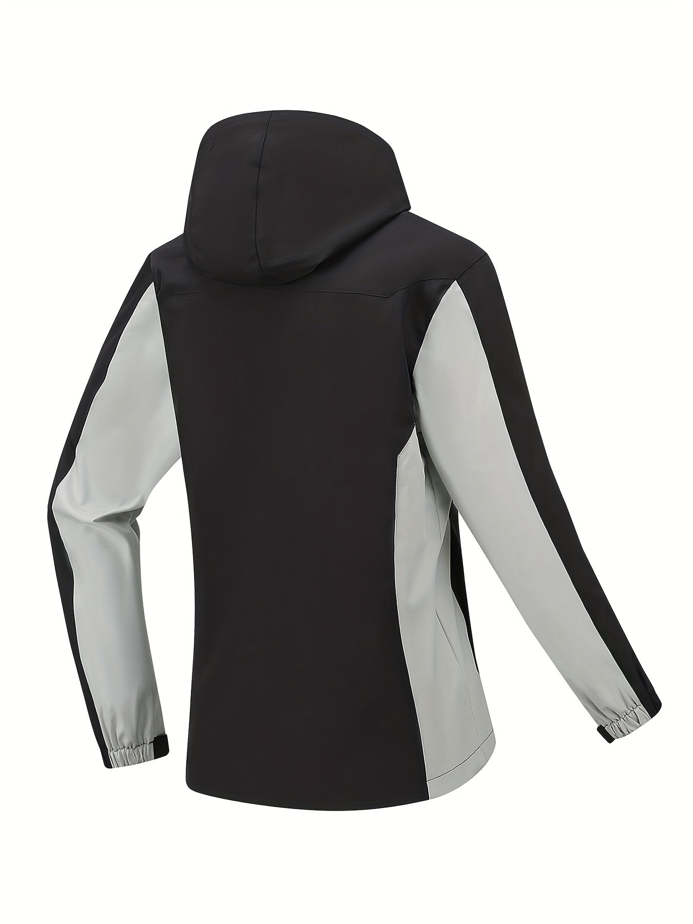 Color Block Hooded Punch Jacket, Casual Waterproof Windproof Jacket, Fleece Warm Hooded Ski Coat, Women’s Outdoor Clothing