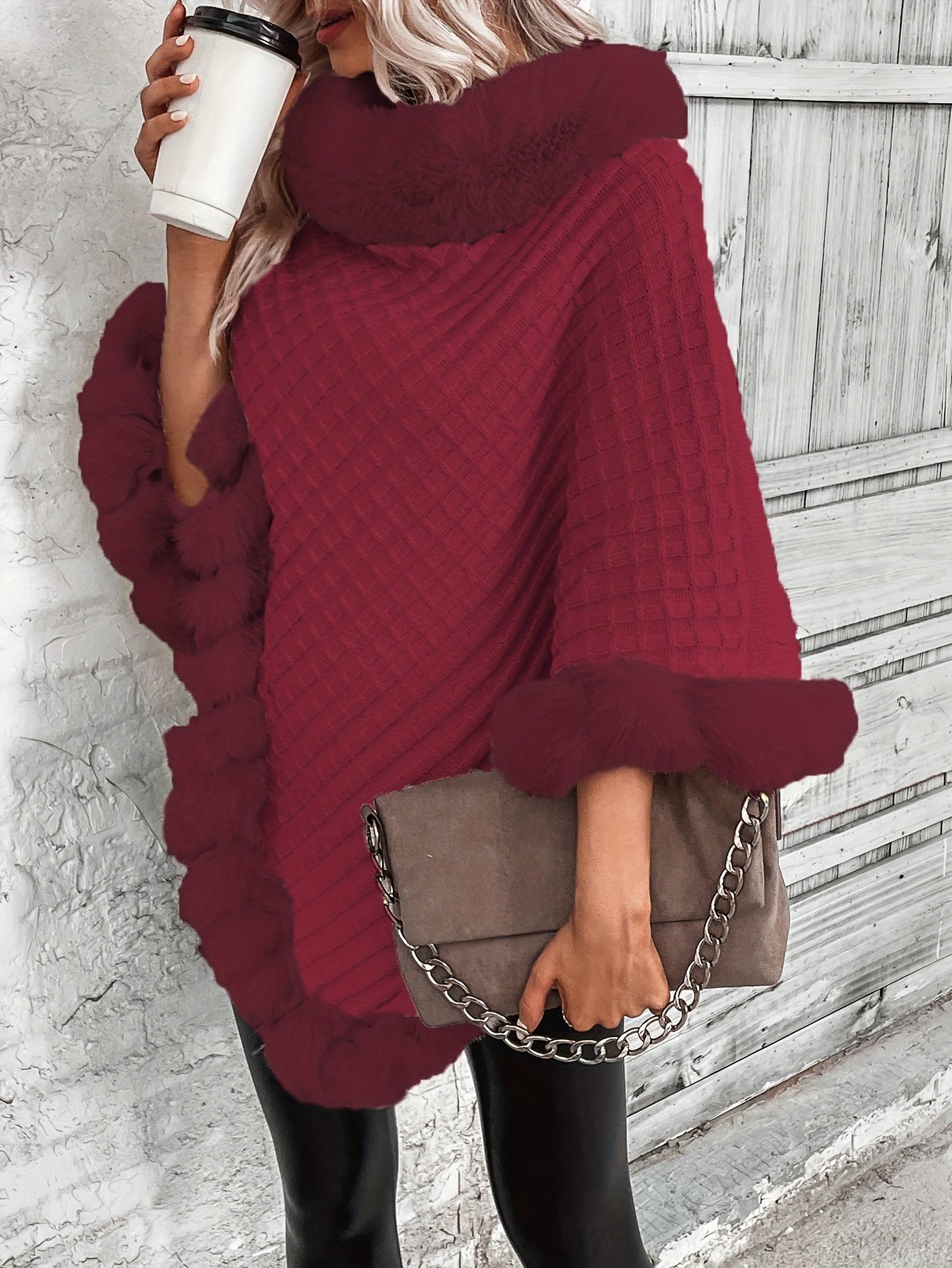 Stay warm and stylish this winter with our Fur-Trim Hanky Hem Pullover Sweater