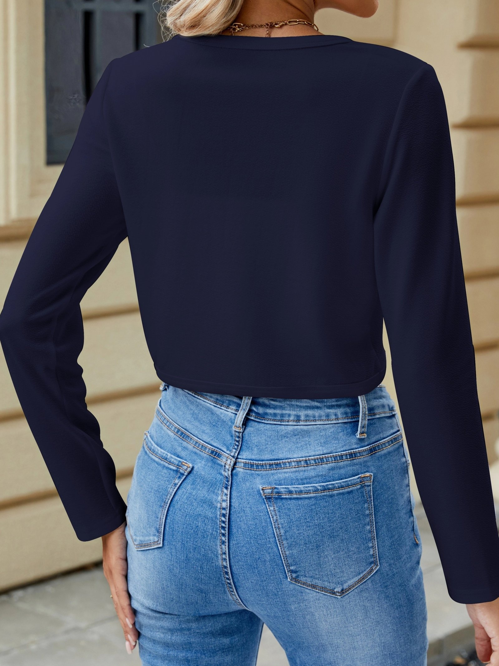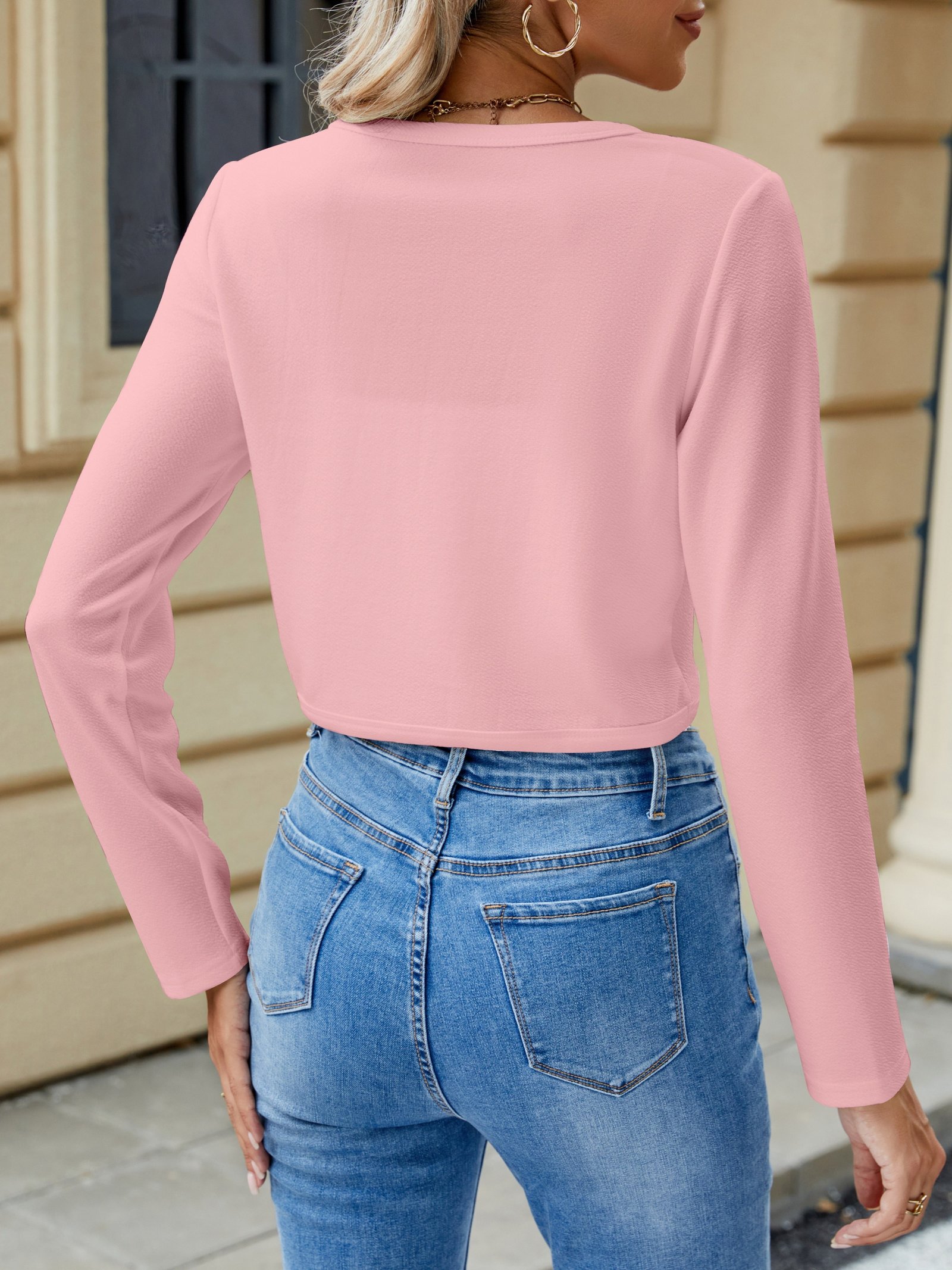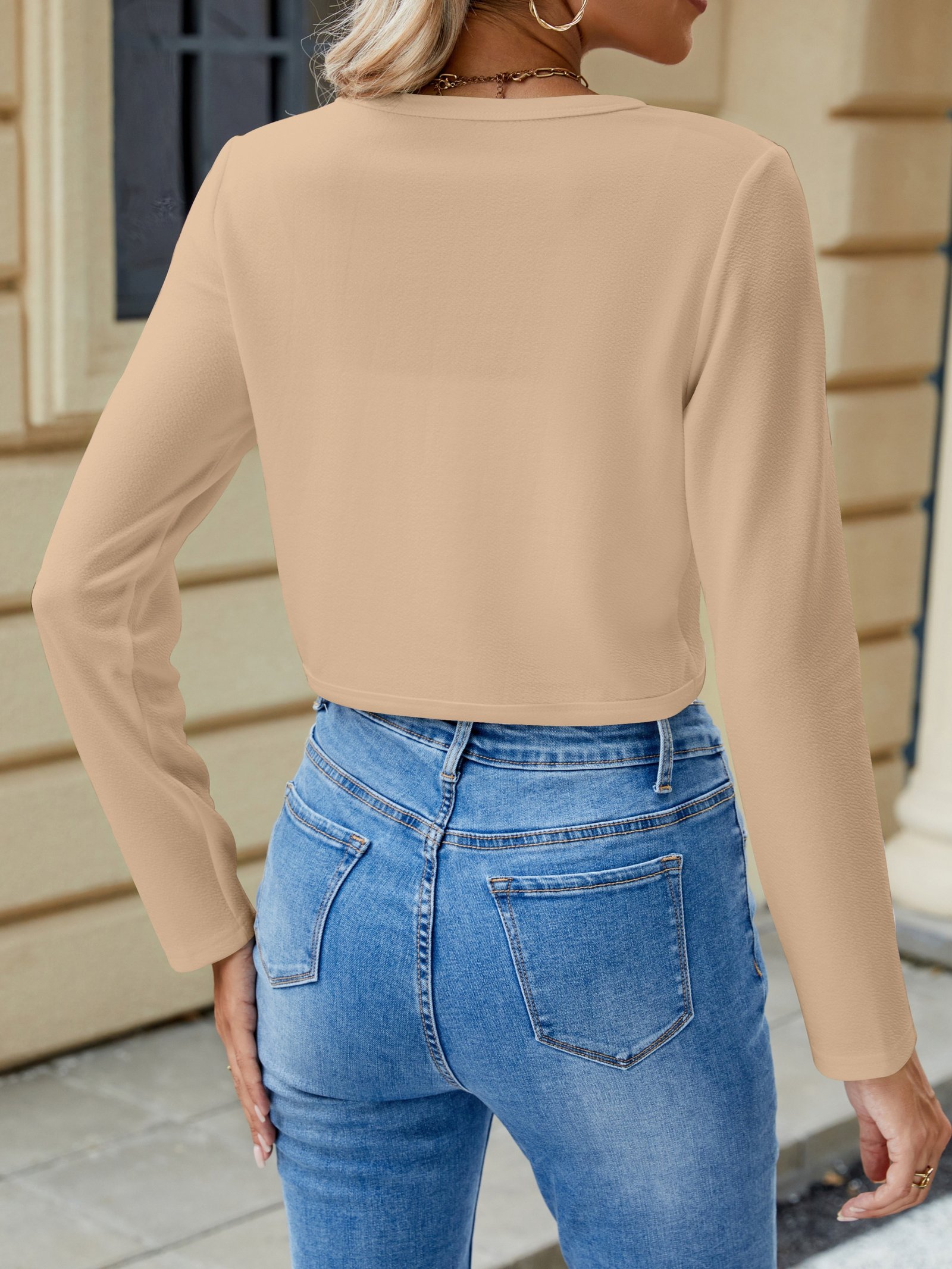 Solid Color Open Front Crop Jacket, Versatile Long Sleeve Outwear For Spring & Fall, Women’s Clothing