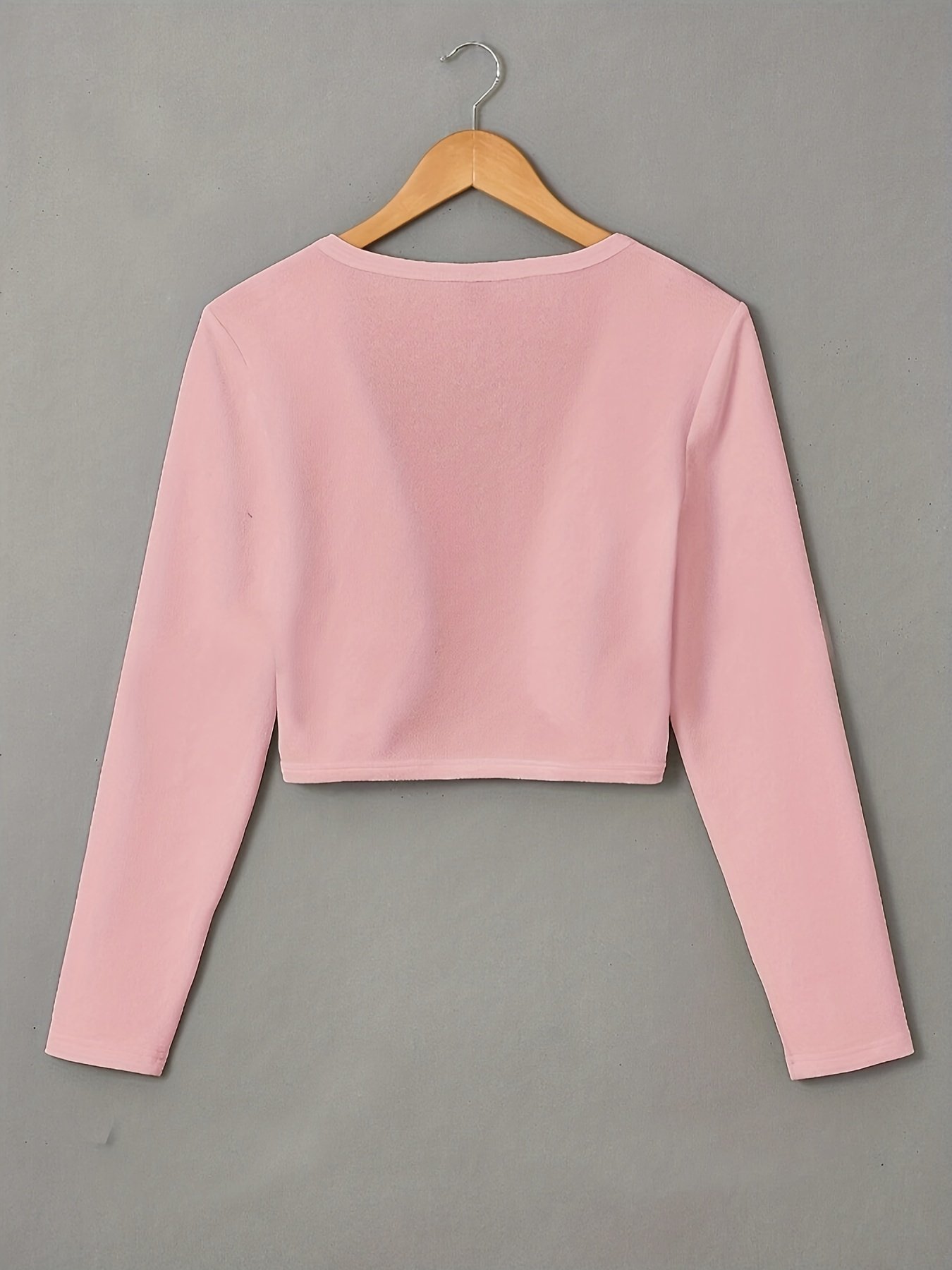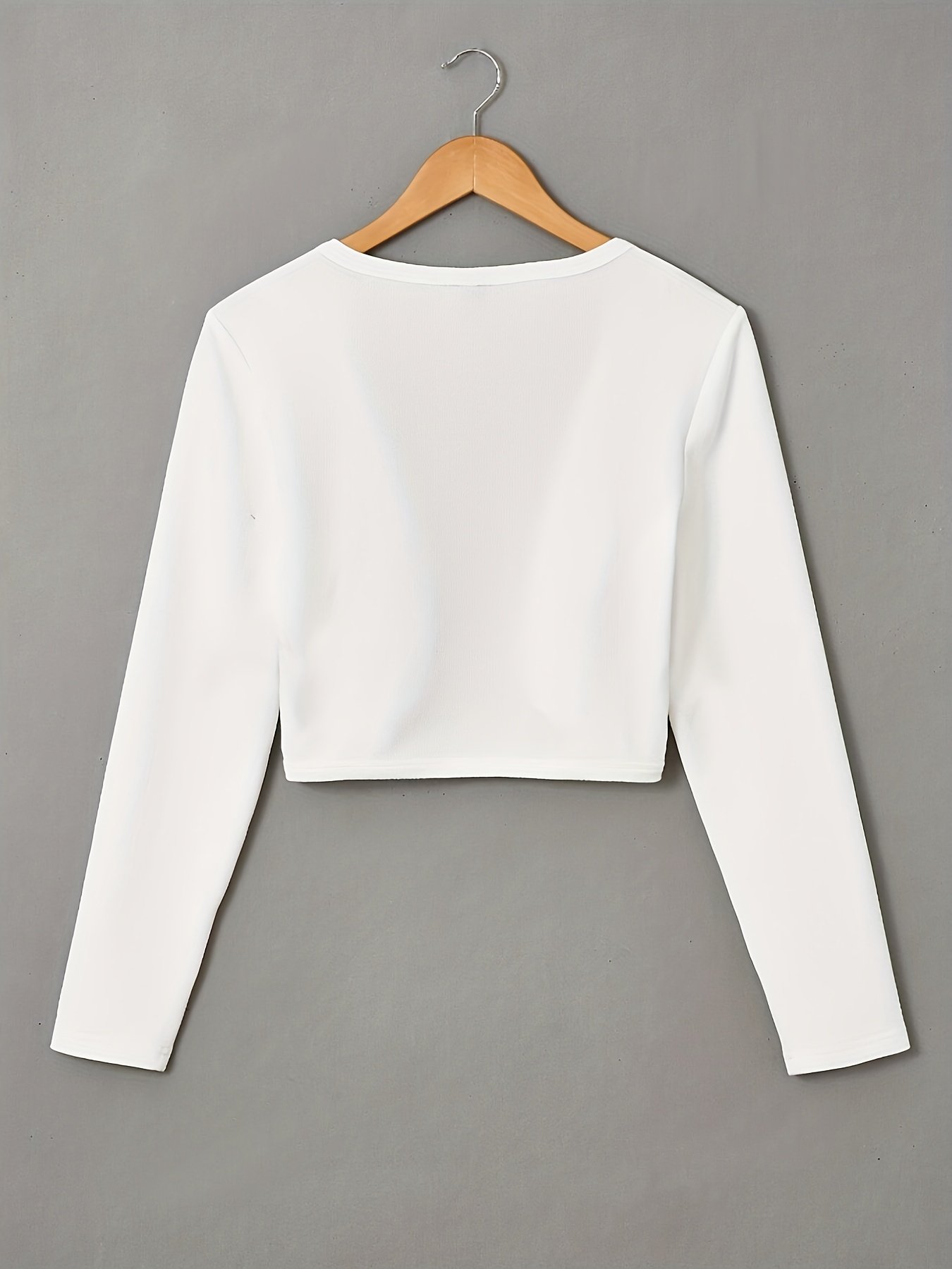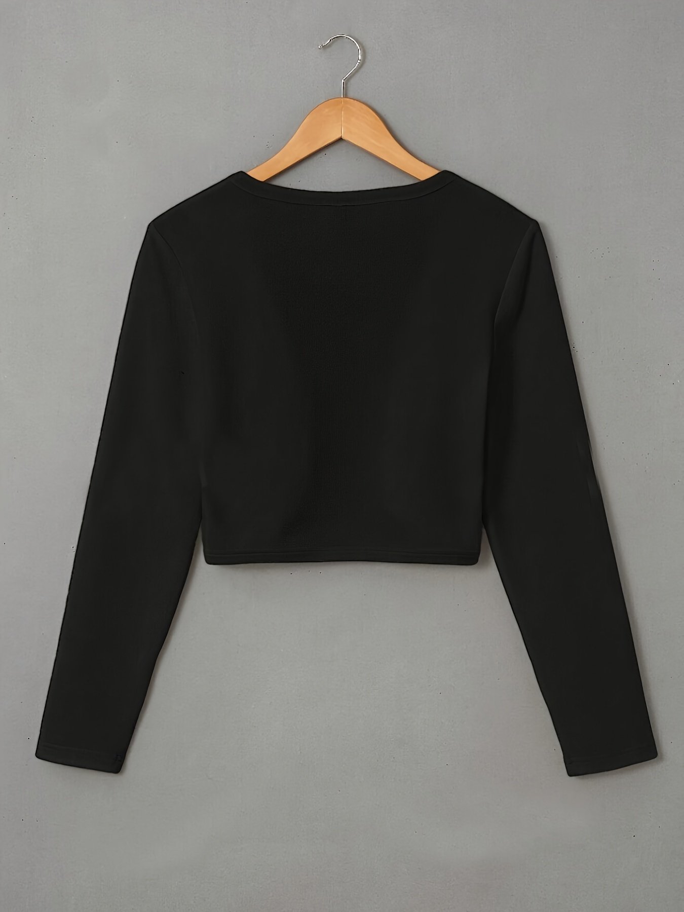 Solid Color Open Front Crop Jacket, Versatile Long Sleeve Outwear For Spring & Fall, Women’s Clothing