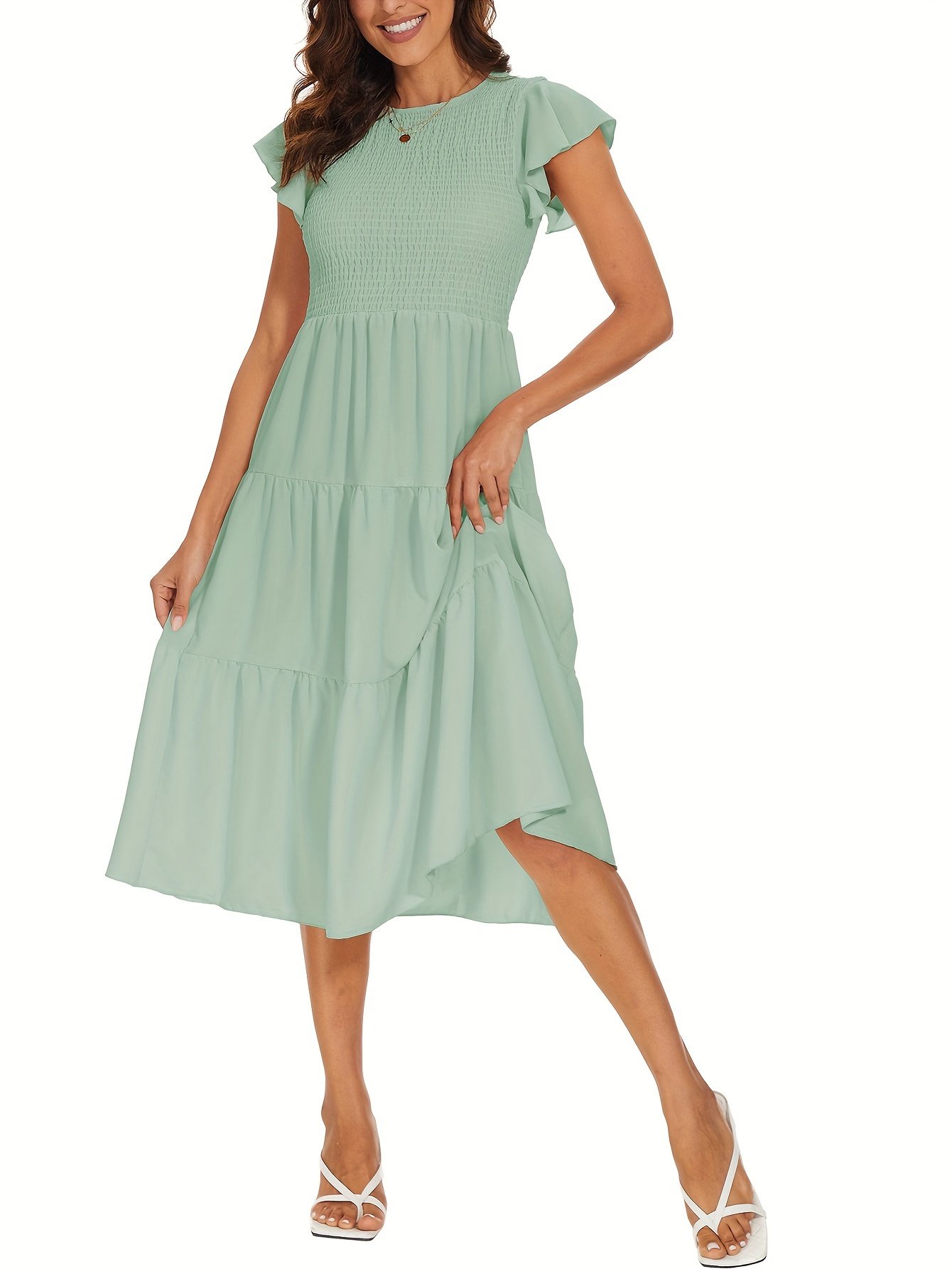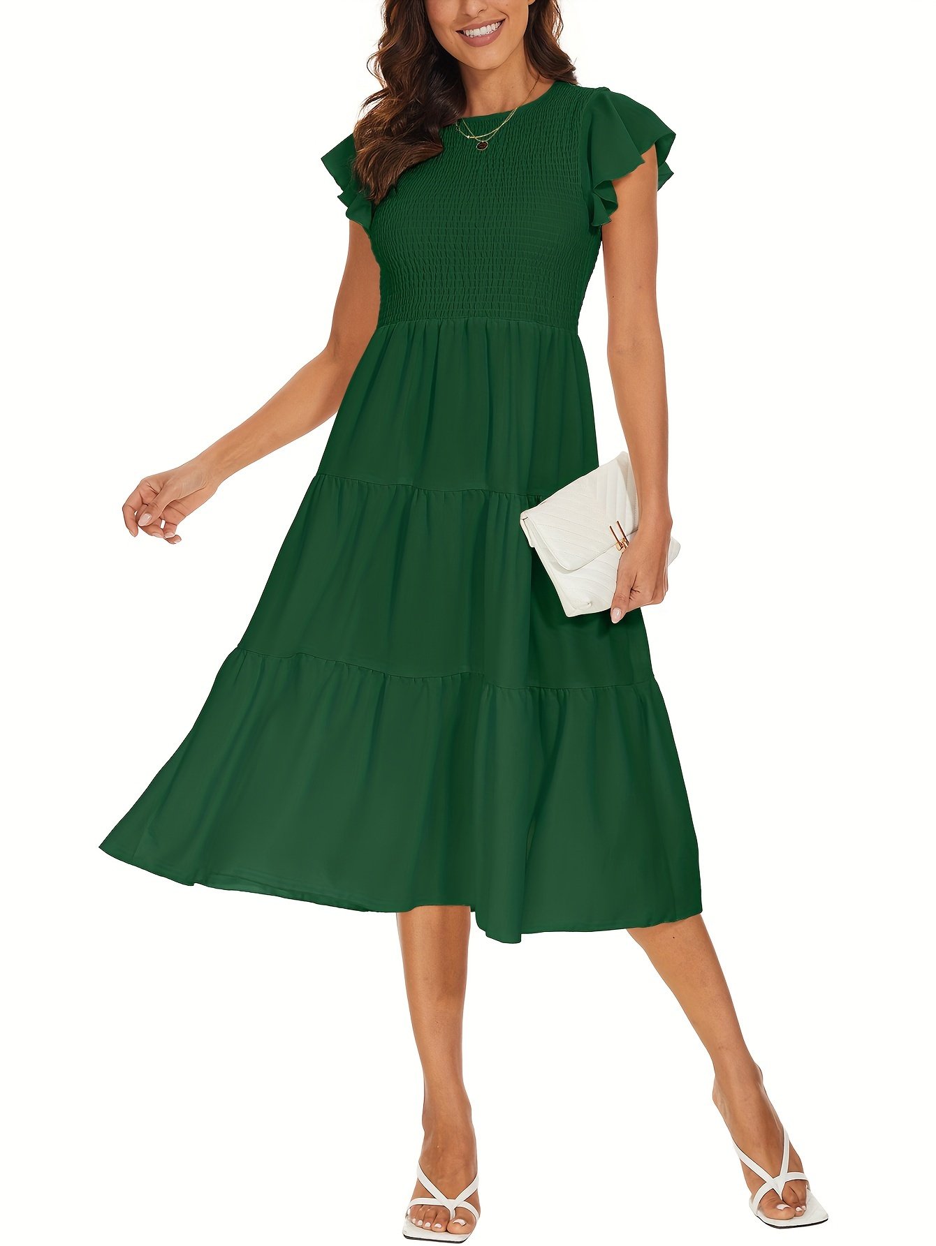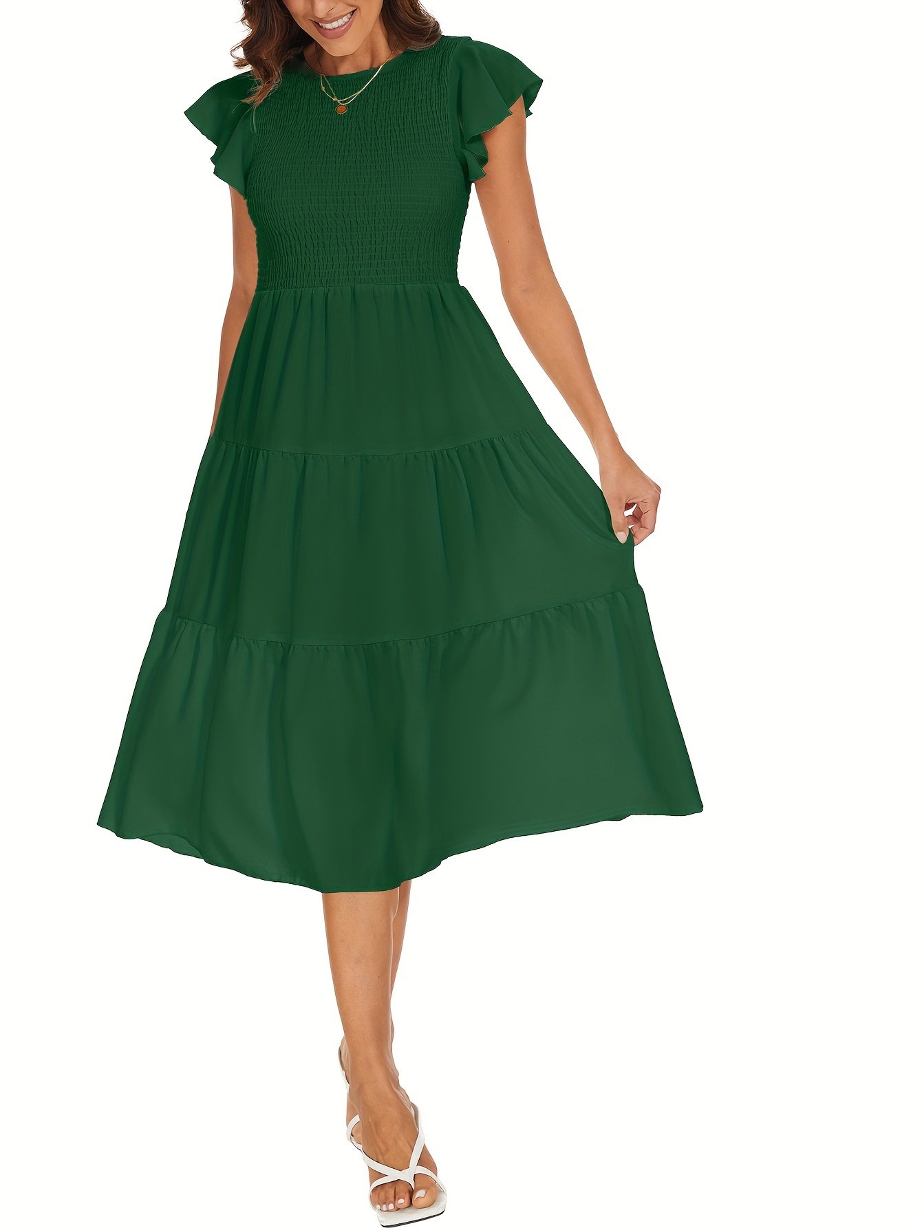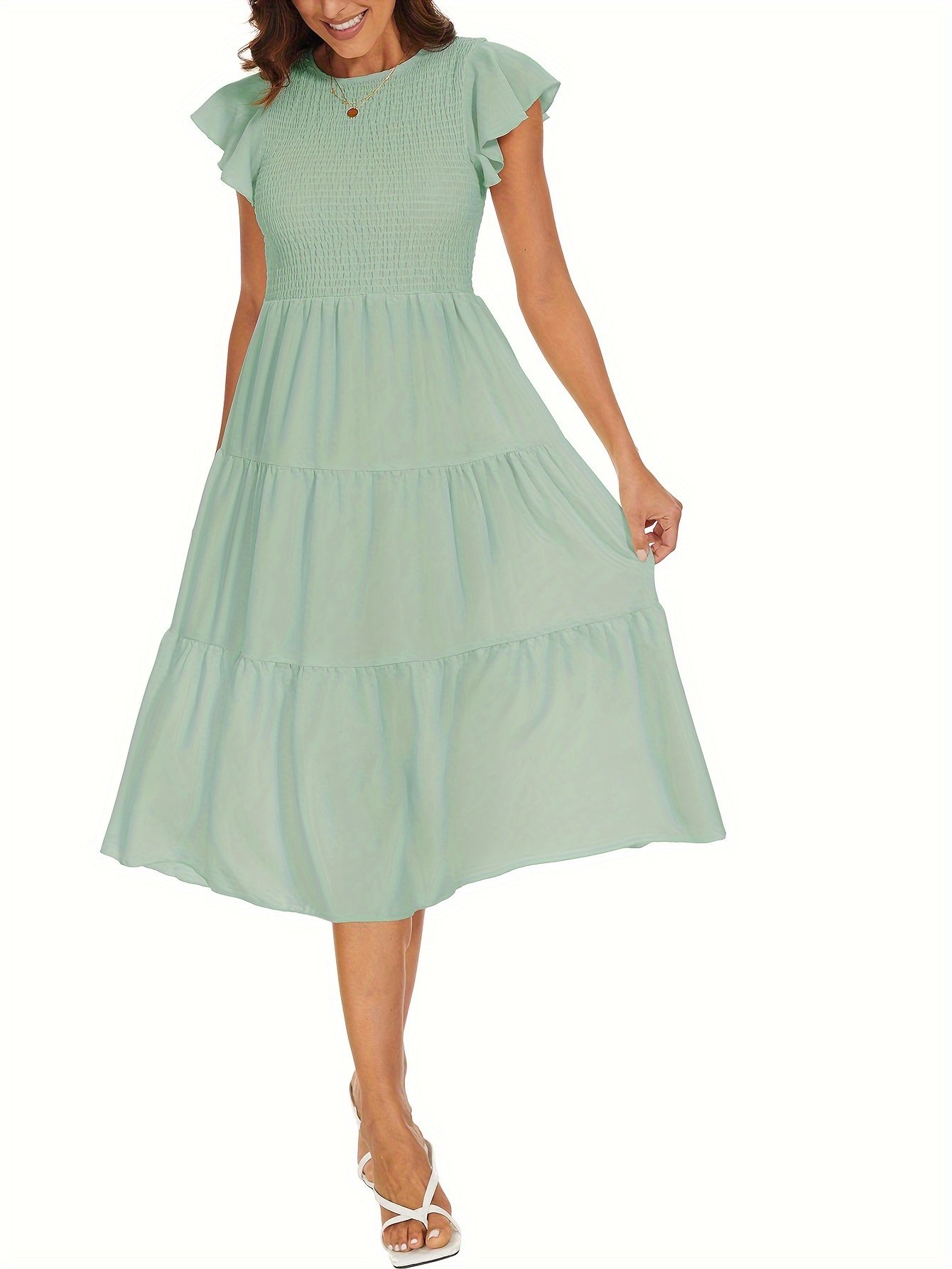 Reviews There are no reviews yet. Be the first to review “Solid Color Shirred Midi Dress, Elegant Flutter Sleeve Ruffle Hem Dress For Spring & Summer, Women’s Clothing”Cancel ReplyYour email address will not be published. Required fields are marked *Your rating * Rate… Perfect Good Average Not that bad Very poor Name *Email *Your review *Submit