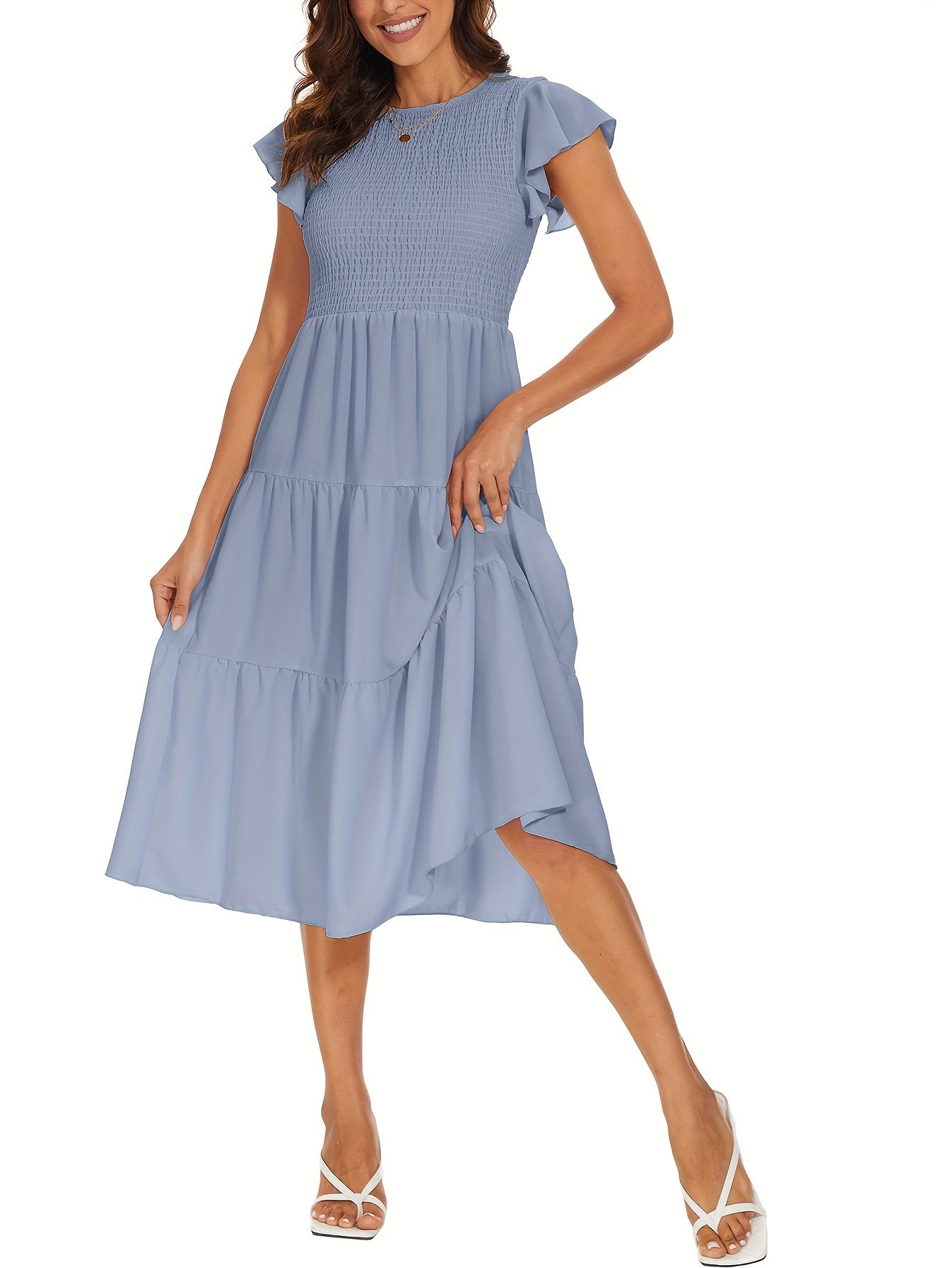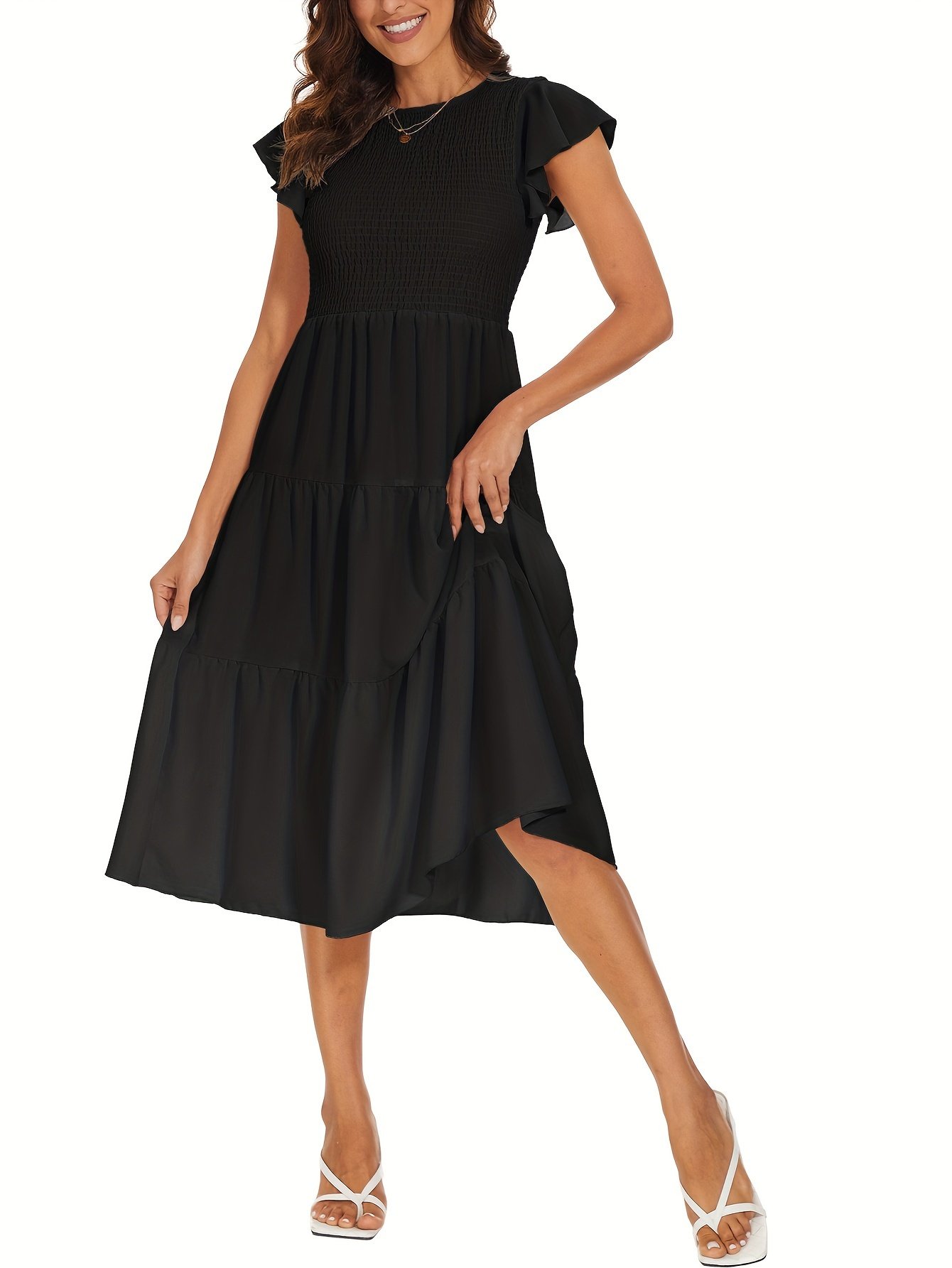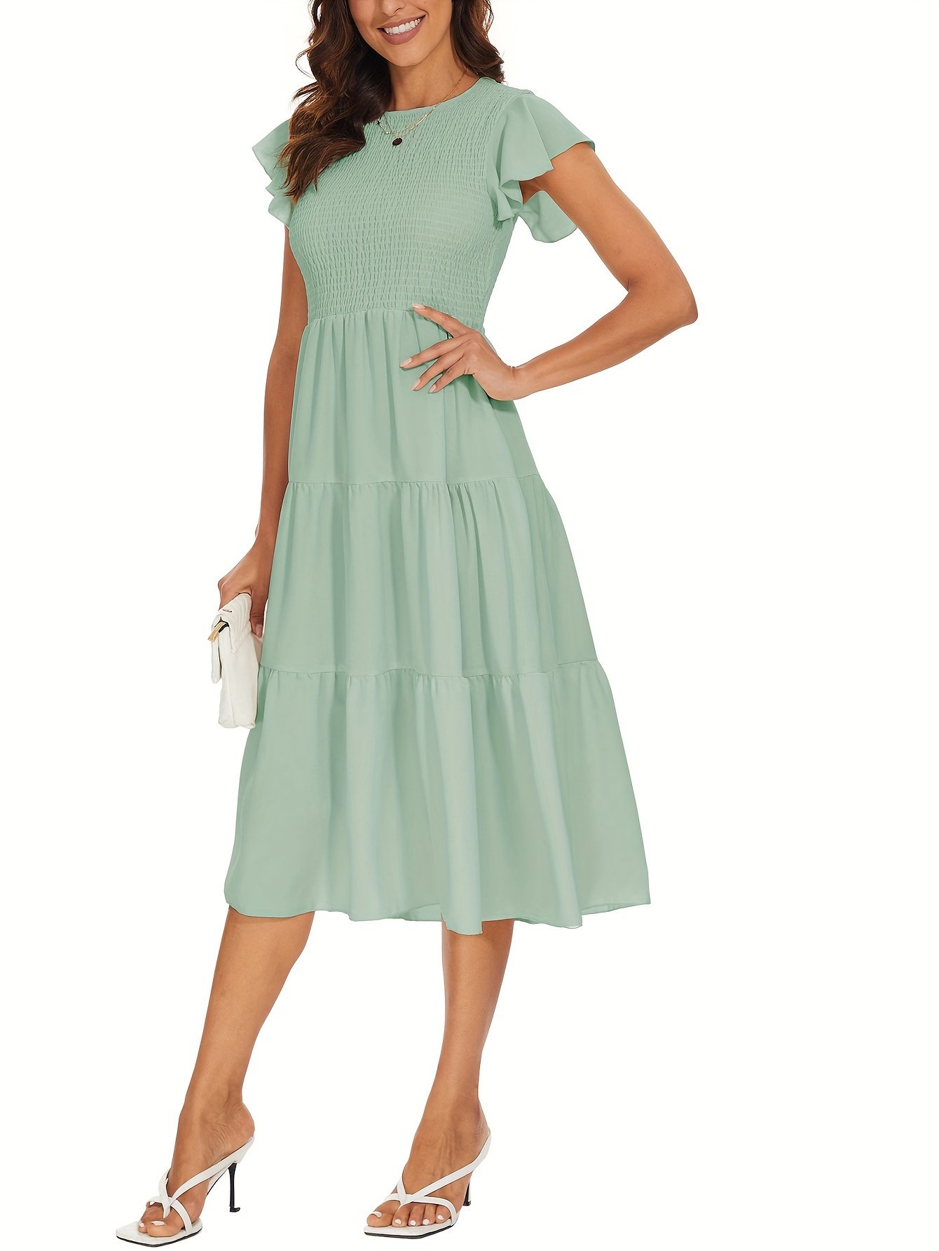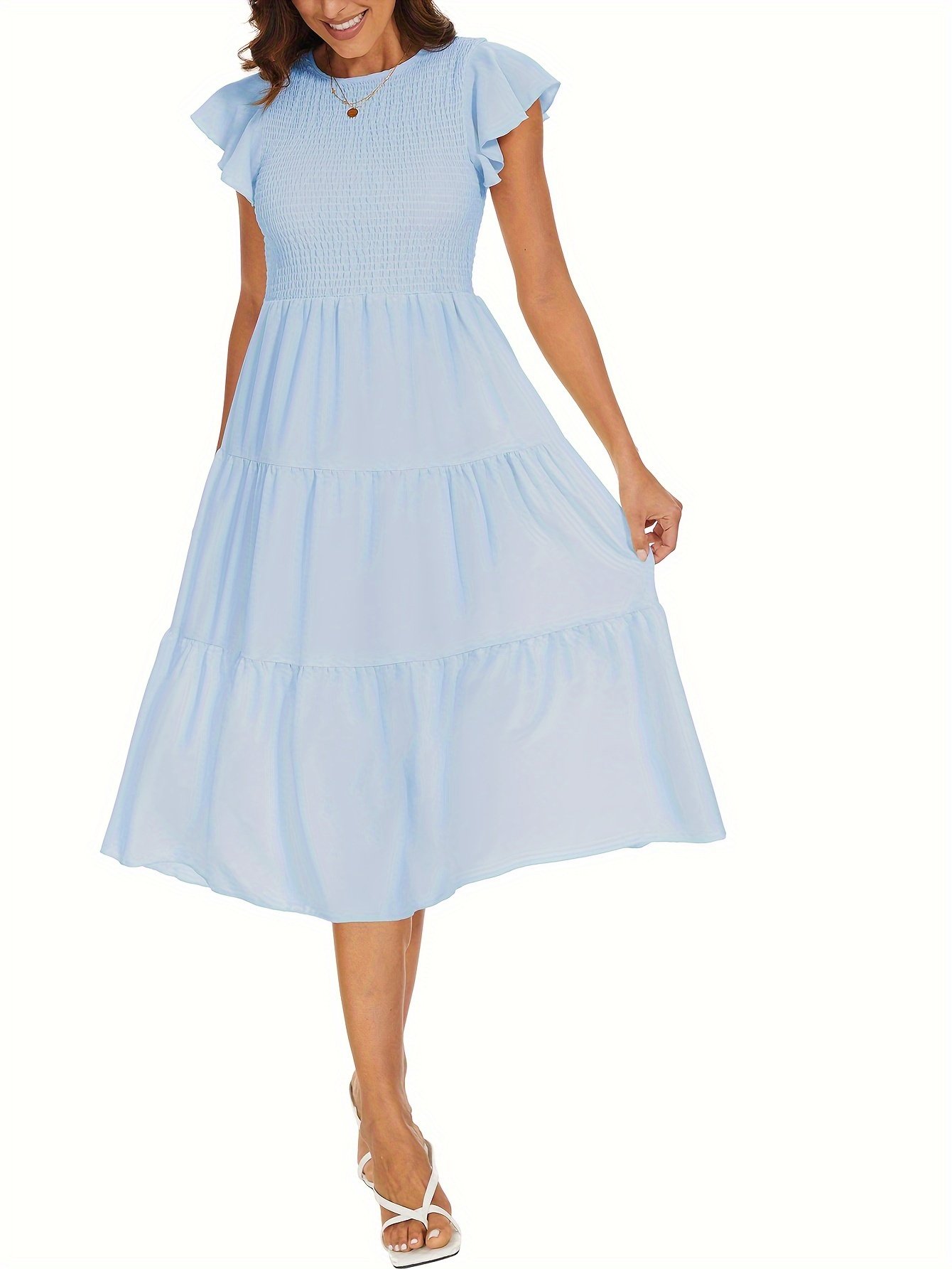 Reviews There are no reviews yet. Be the first to review “Solid Color Shirred Midi Dress, Elegant Flutter Sleeve Ruffle Hem Dress For Spring & Summer, Women’s Clothing”Cancel ReplyYour email address will not be published. Required fields are marked *Your rating * Rate… Perfect Good Average Not that bad Very poor Name *Email *Your review *Submit