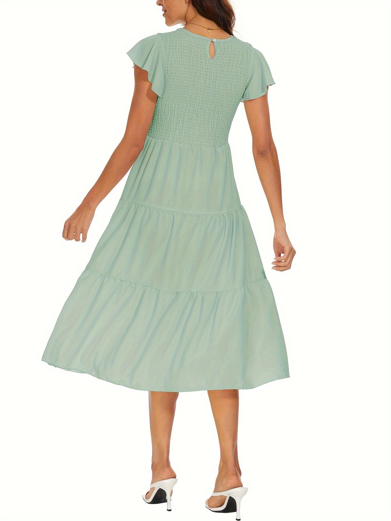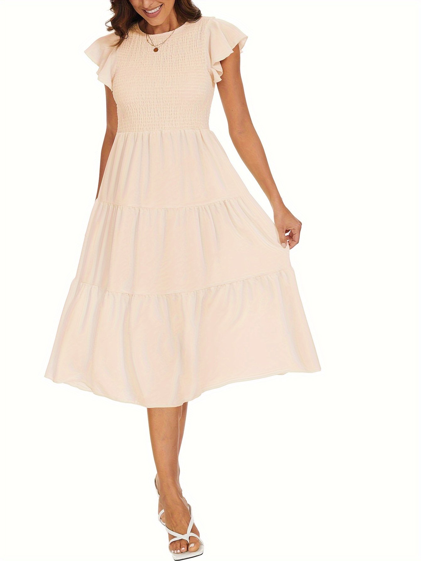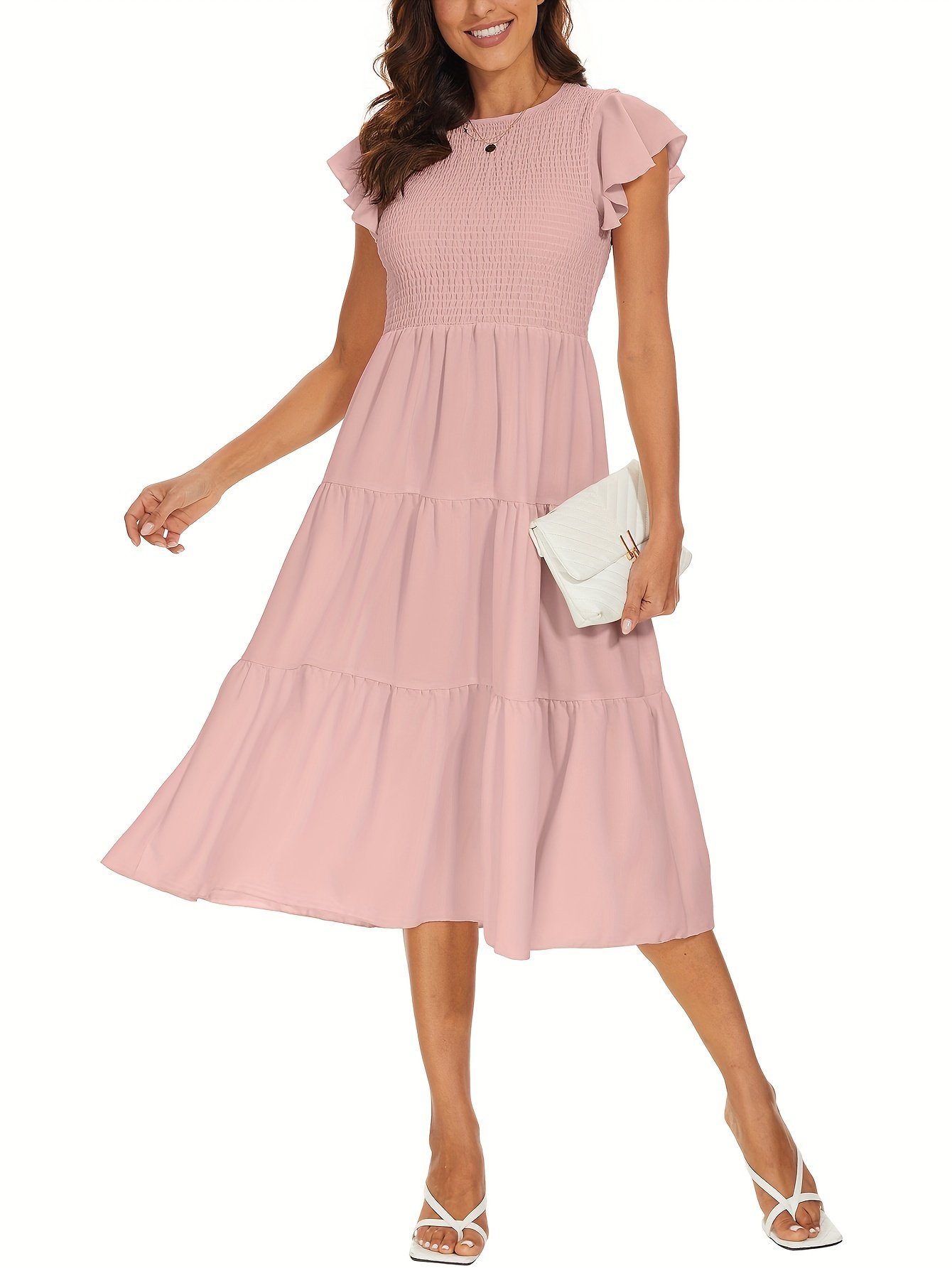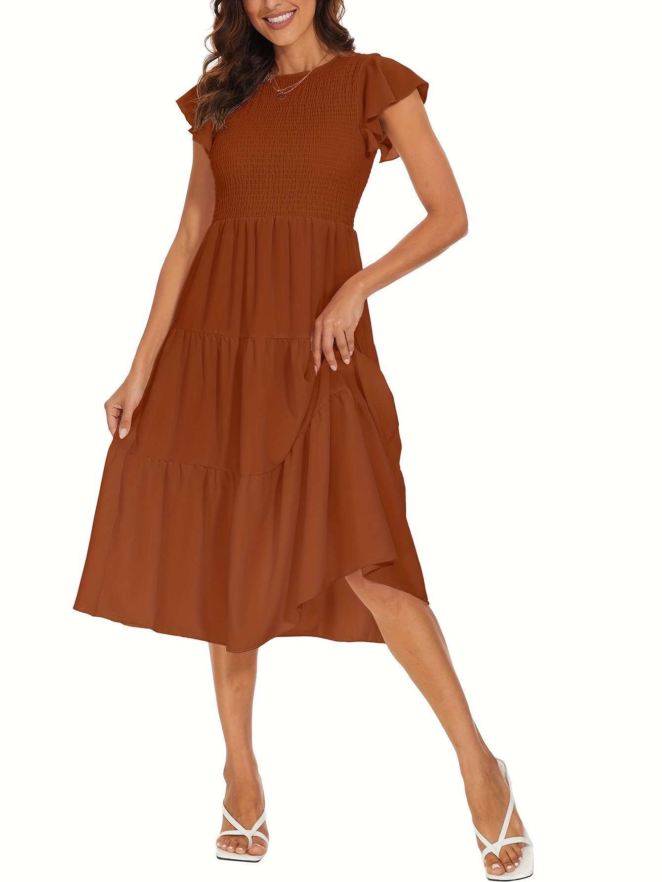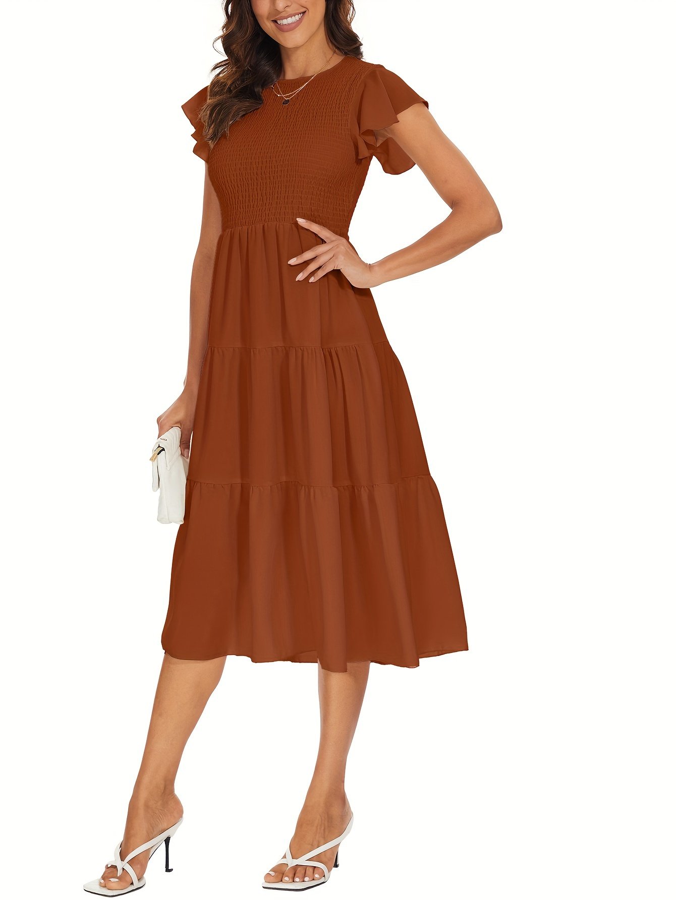 Reviews There are no reviews yet. Be the first to review “Solid Color Shirred Midi Dress, Elegant Flutter Sleeve Ruffle Hem Dress For Spring & Summer, Women’s Clothing”Cancel ReplyYour email address will not be published. Required fields are marked *Your rating * Rate… Perfect Good Average Not that bad Very poor Name *Email *Your review *Submit