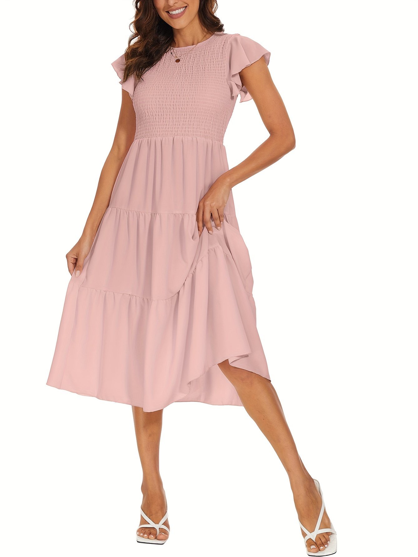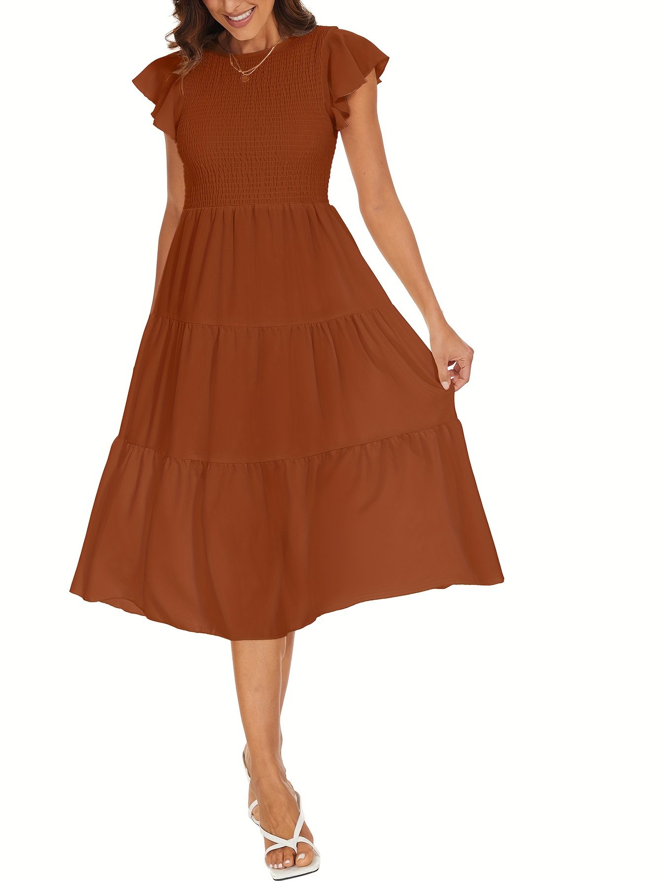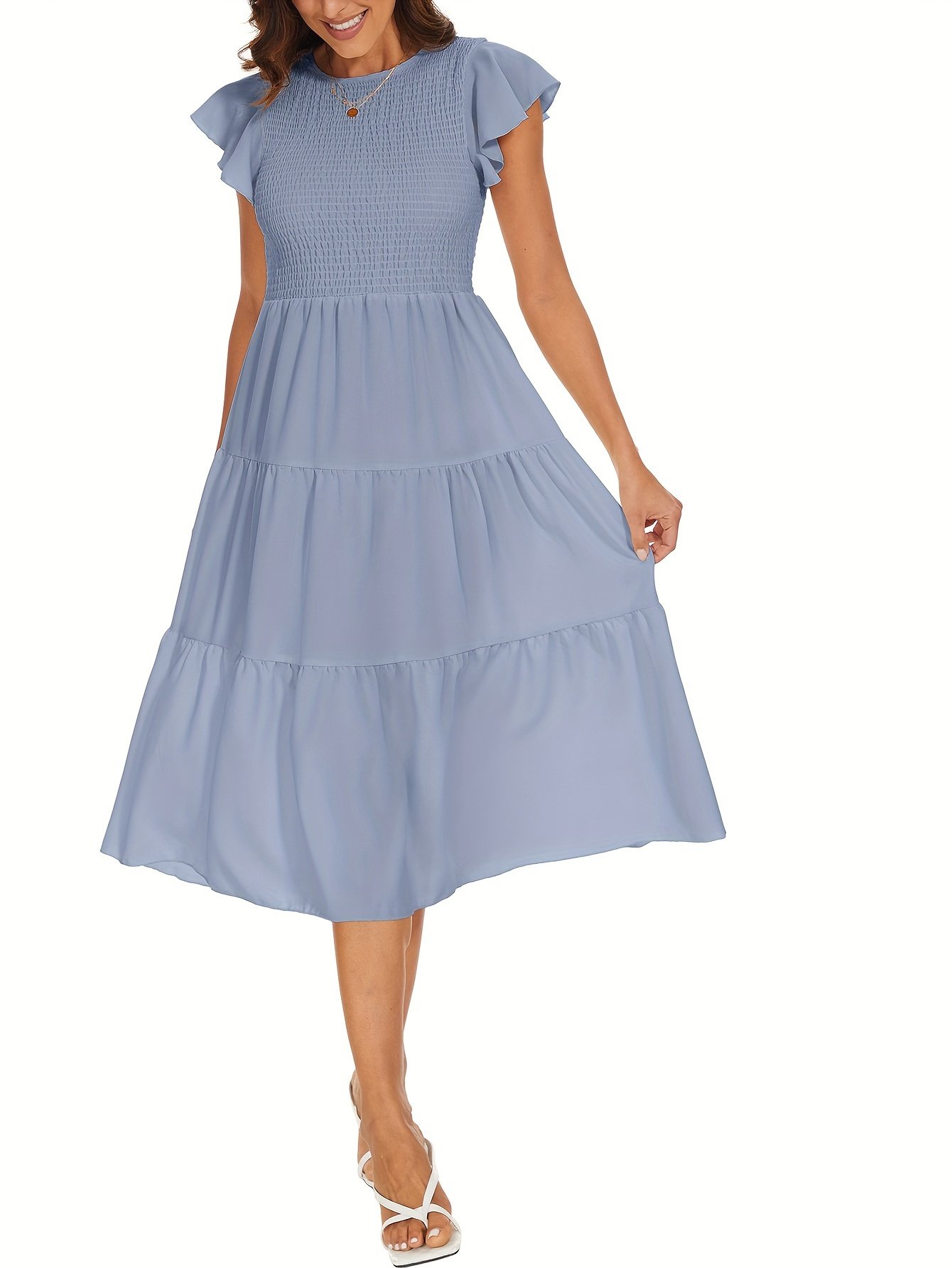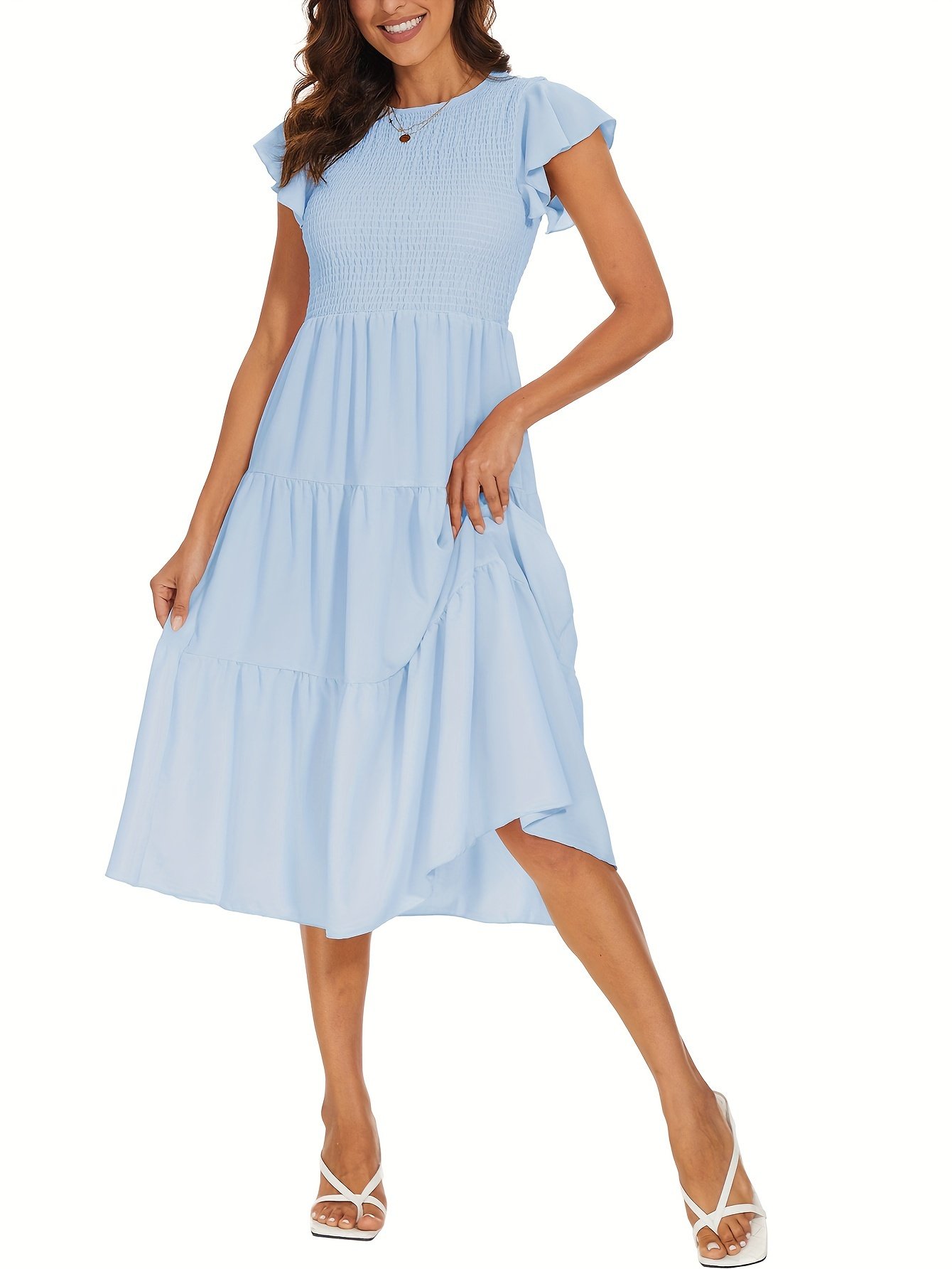 Reviews There are no reviews yet. Be the first to review “Solid Color Shirred Midi Dress, Elegant Flutter Sleeve Ruffle Hem Dress For Spring & Summer, Women’s Clothing”Cancel ReplyYour email address will not be published. Required fields are marked *Your rating * Rate… Perfect Good Average Not that bad Very poor Name *Email *Your review *Submit