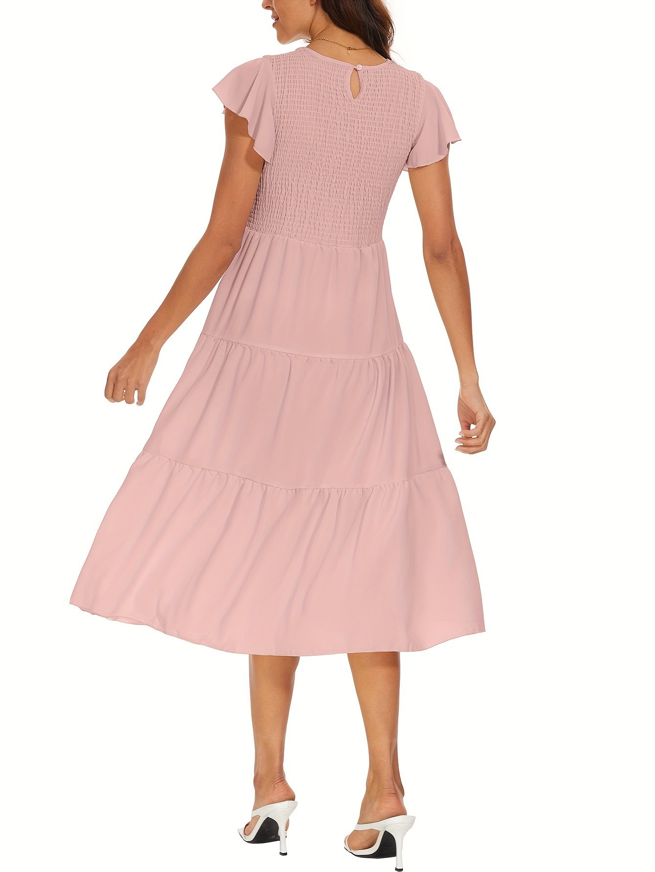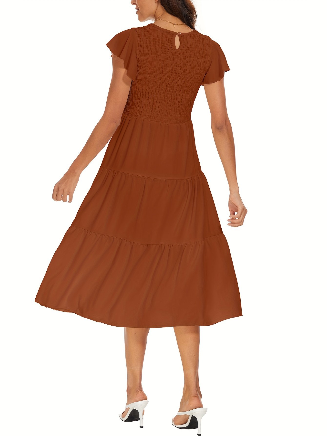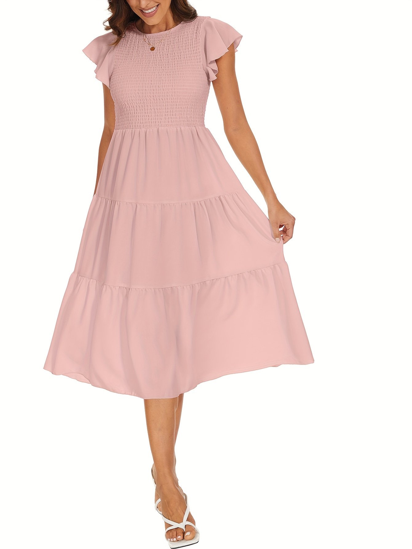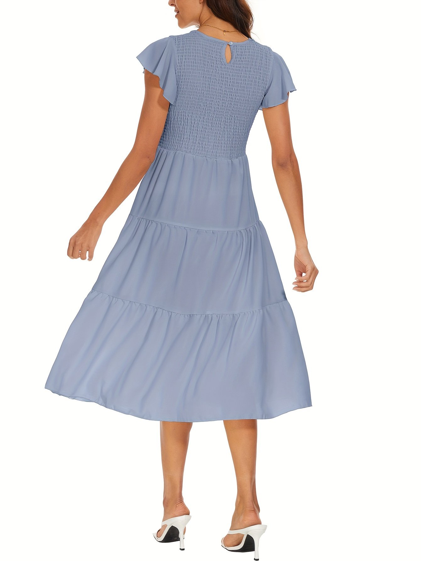 Reviews There are no reviews yet. Be the first to review “Solid Color Shirred Midi Dress, Elegant Flutter Sleeve Ruffle Hem Dress For Spring & Summer, Women’s Clothing”Cancel ReplyYour email address will not be published. Required fields are marked *Your rating * Rate… Perfect Good Average Not that bad Very poor Name *Email *Your review *Submit