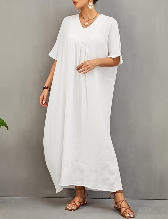 Reviews There are no reviews yet. Be the first to review “Solid Color V Neck Coverup Dress, Casual Batwing Sleeve Loose Maxi Dress For Spring & Summer, Women’s Clothing”Cancel ReplyYour email address will not be published. Required fields are marked *Your rating * Rate… Perfect Good Average Not that bad Very poor Name *Email *Your review *Submit