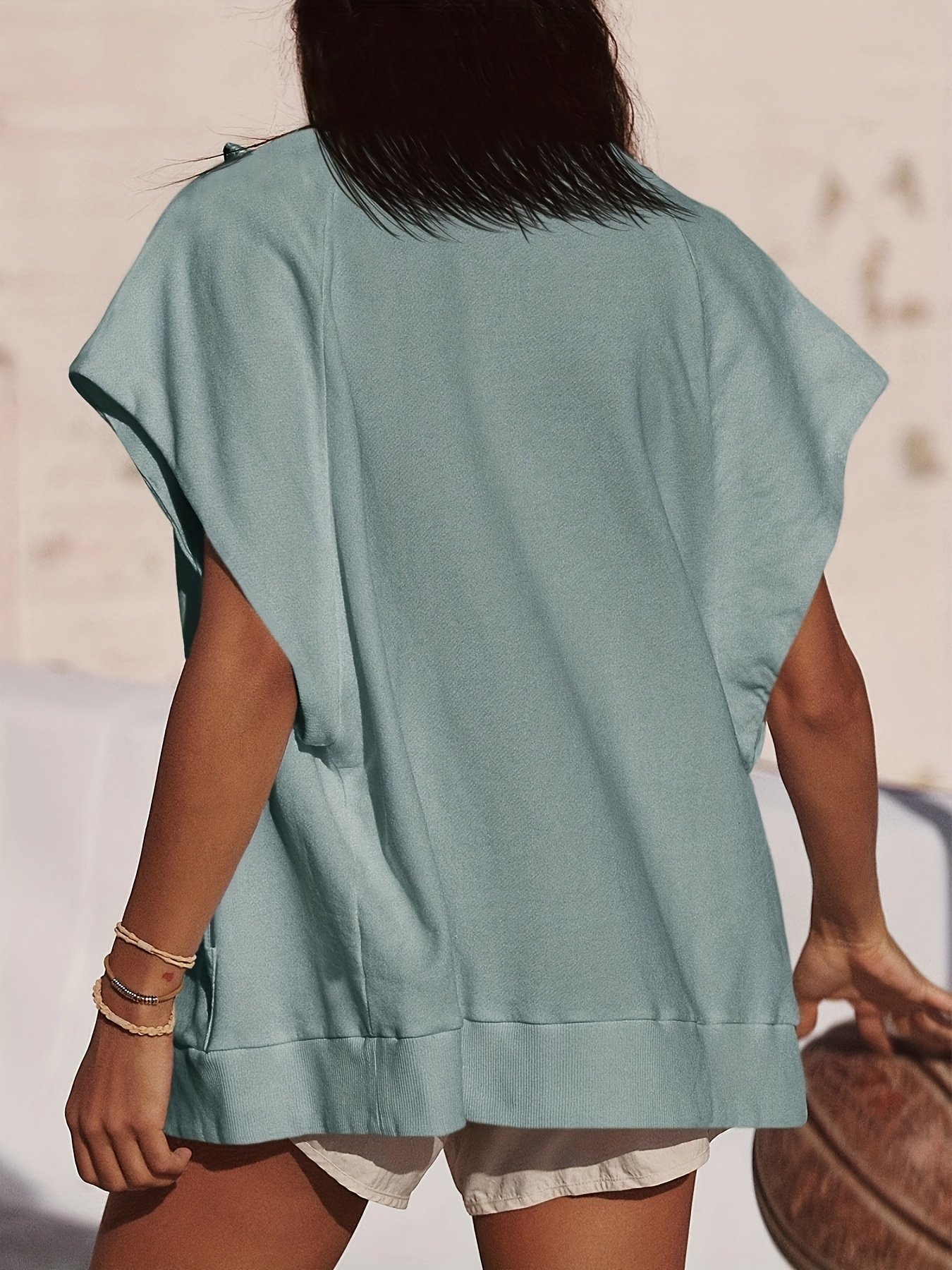 Be the first to review “Solid Color Zipper Kangaroo Pockets Jacket, Versatile Cap Sleeve Loose Outwear For Spring & Summer, Women’s Clothing”