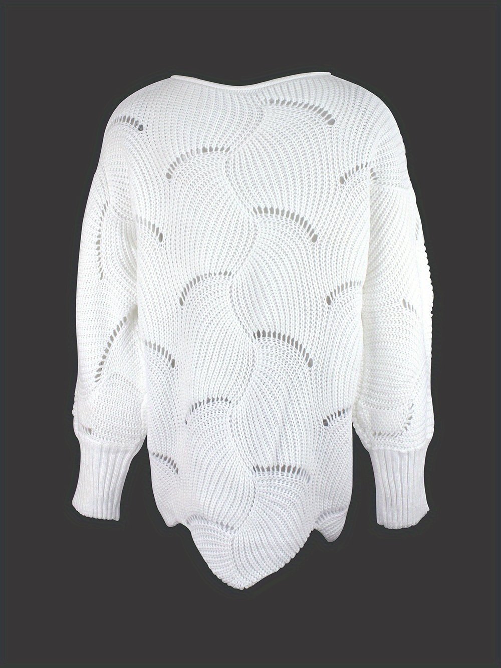 Be the first to review “Solid Cutout Irregular Hem Knit Sweater, Casual Crew Neck Long Sleeve Pullover Sweater, Women’s Clothing”