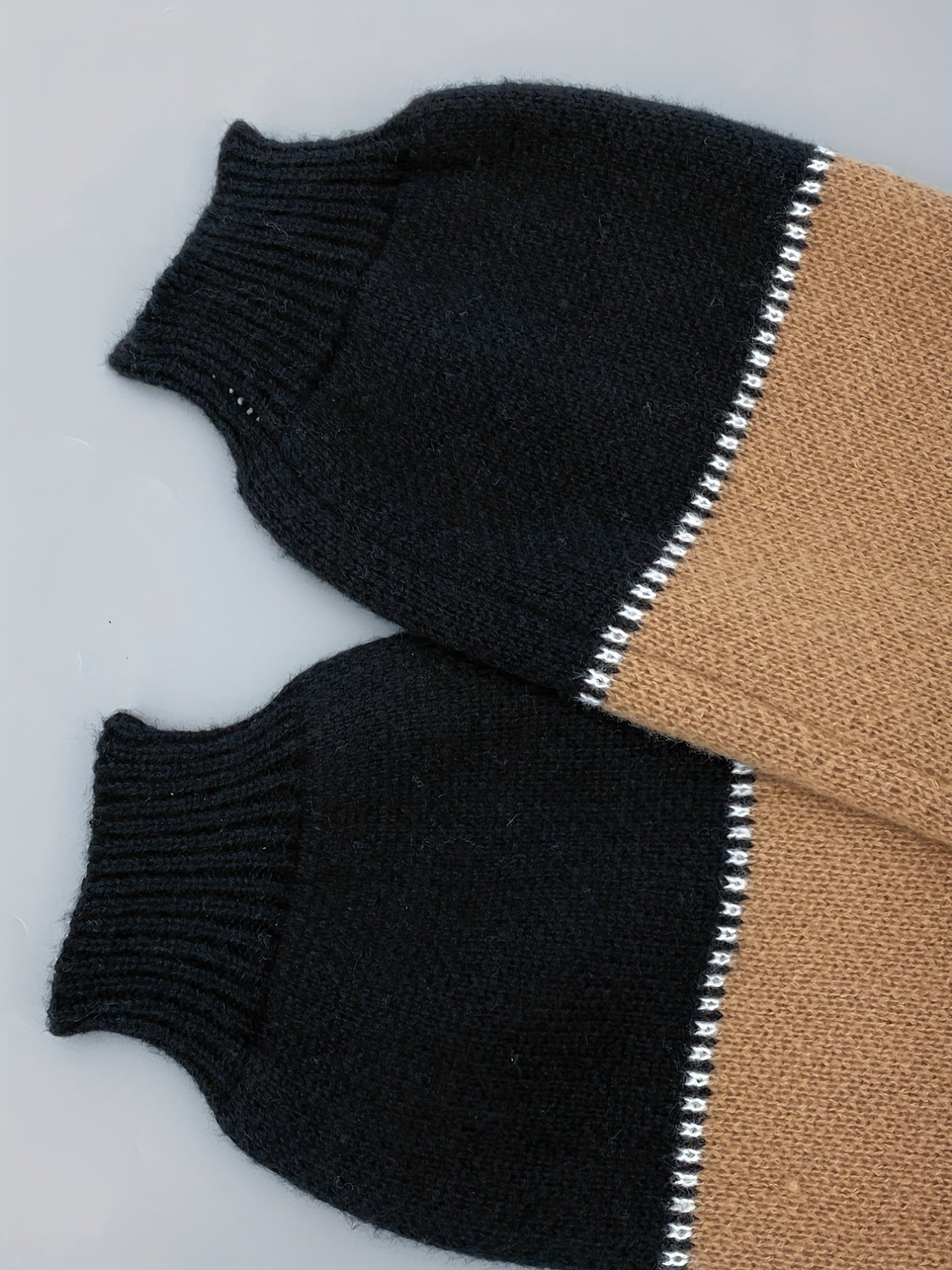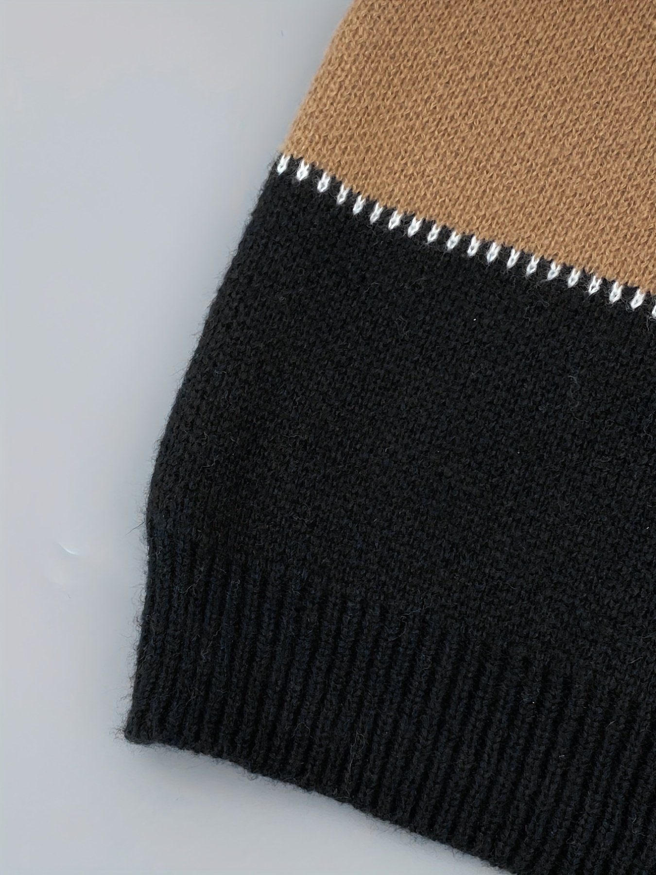 Stylish Color Block Leopard Print Sweater, Crew Neck Long Sleeve Sweater, Casual Tops For Fall & Winter, Women’s Clothing