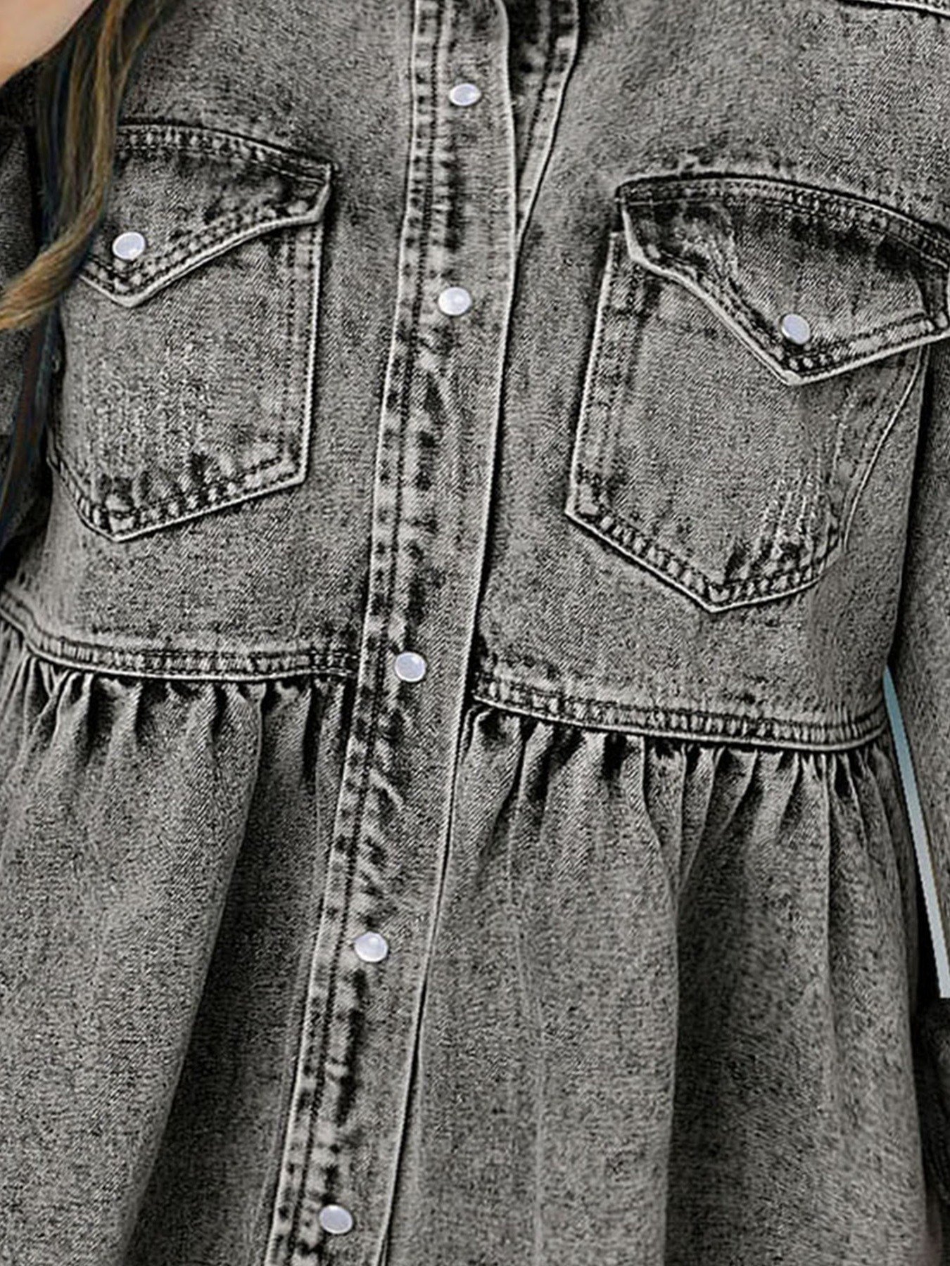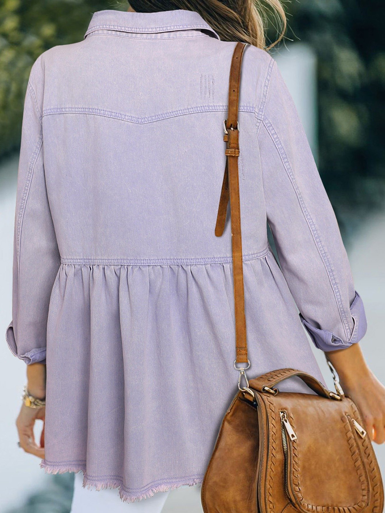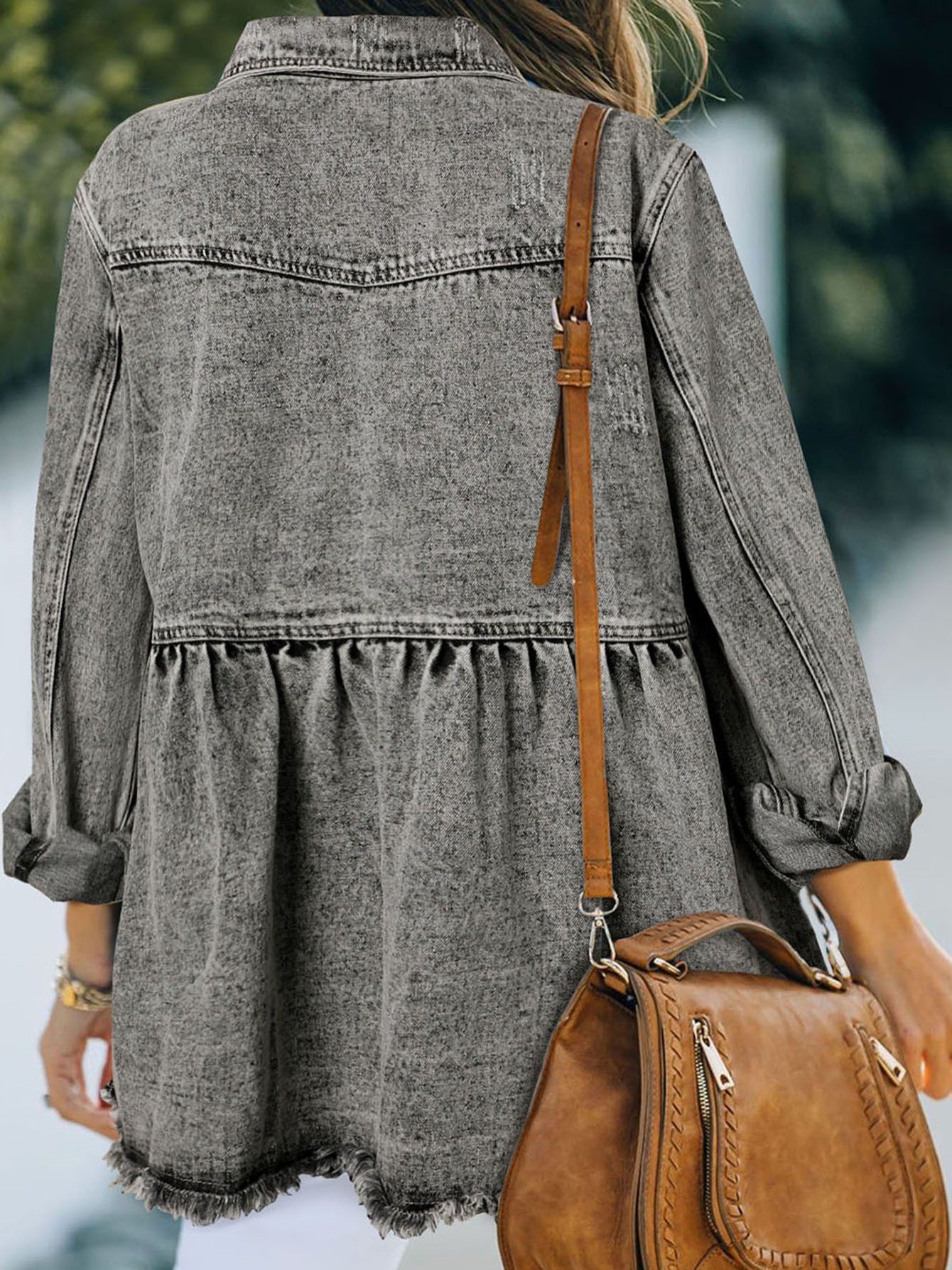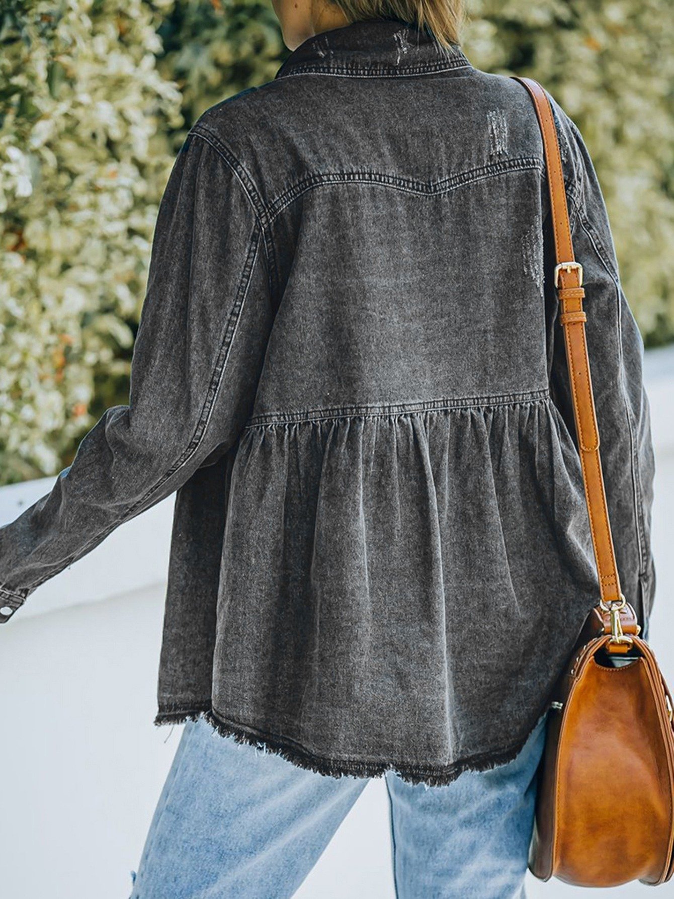 Women’s Casual Long Sleeve Denim Button Down Shirt, Ruffled-Hem Denim Jacket