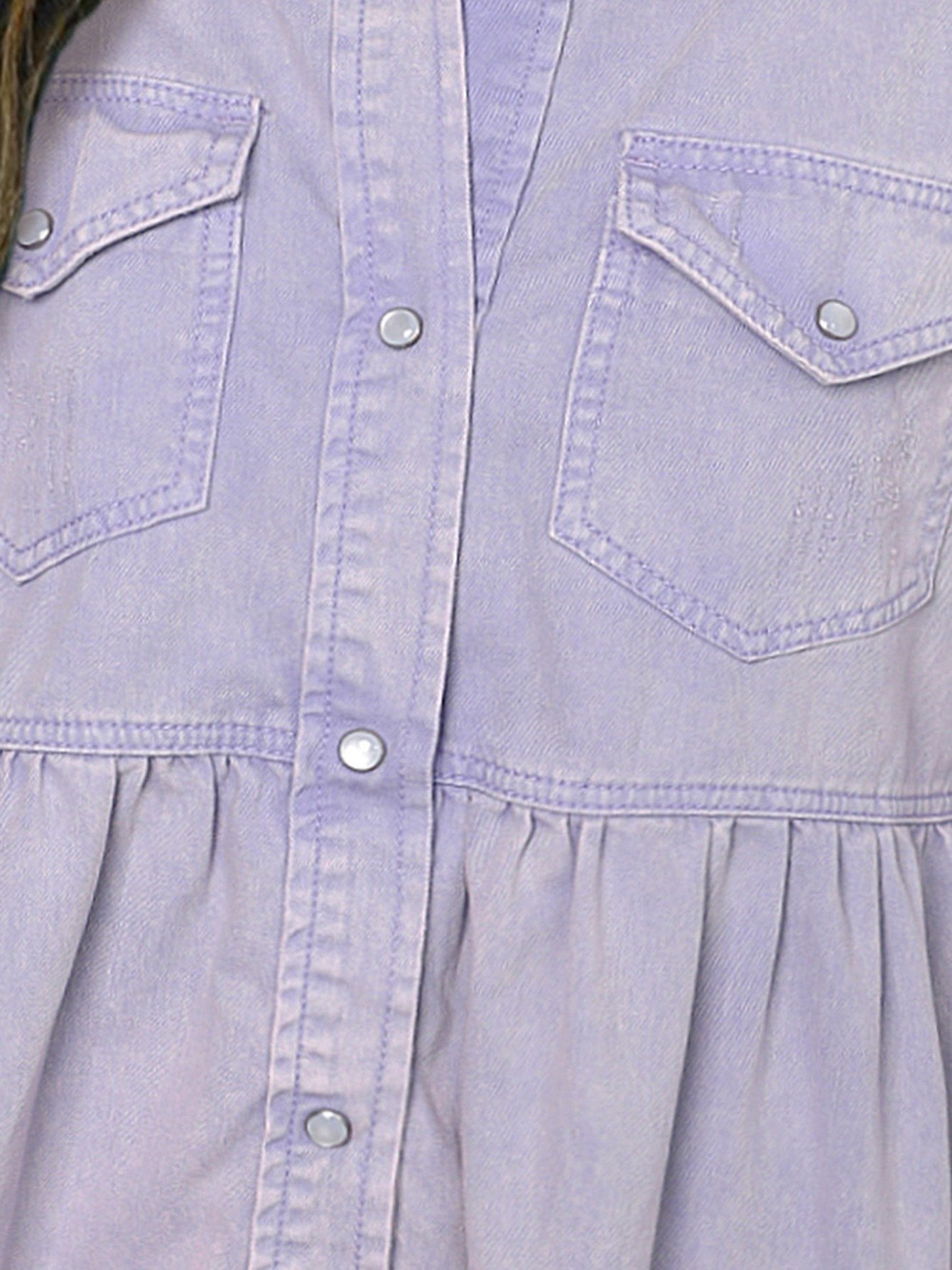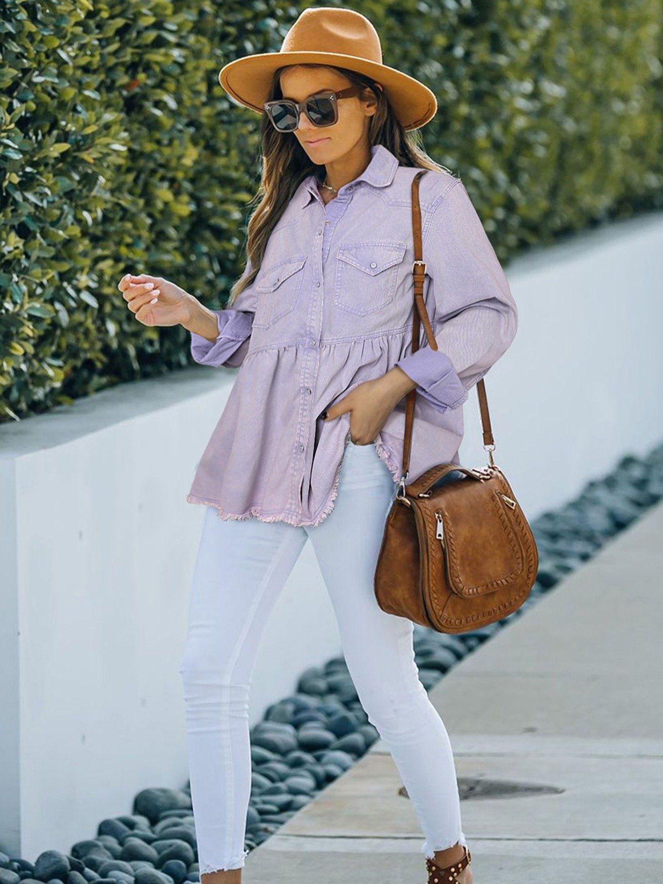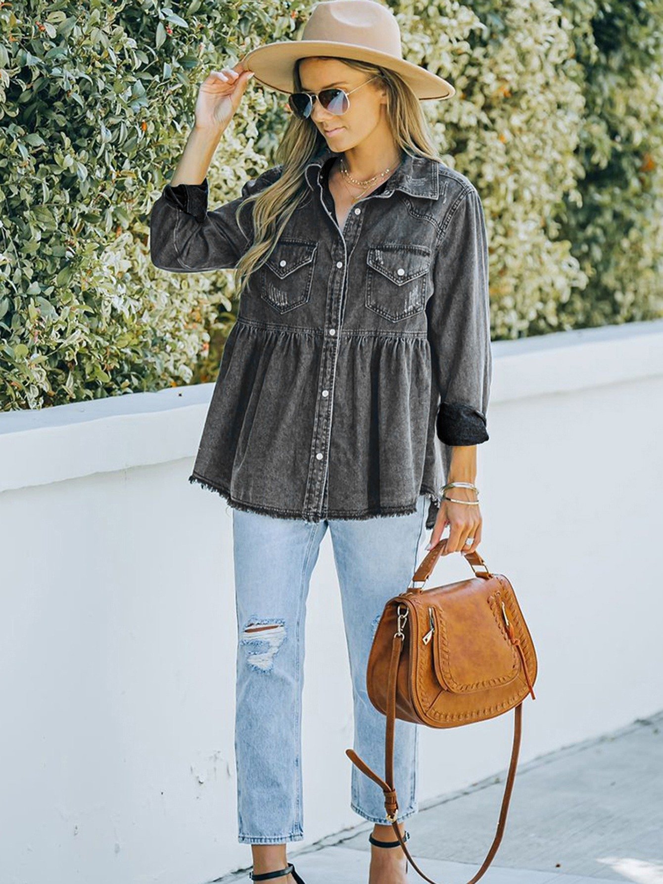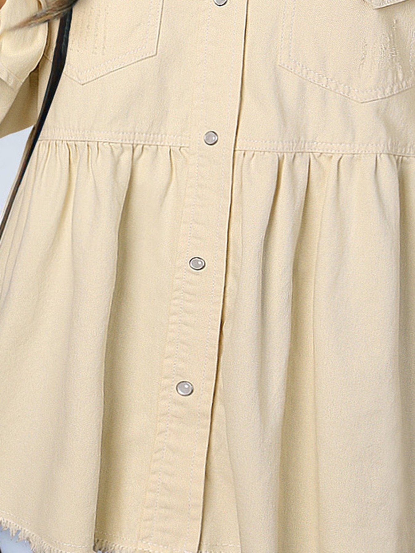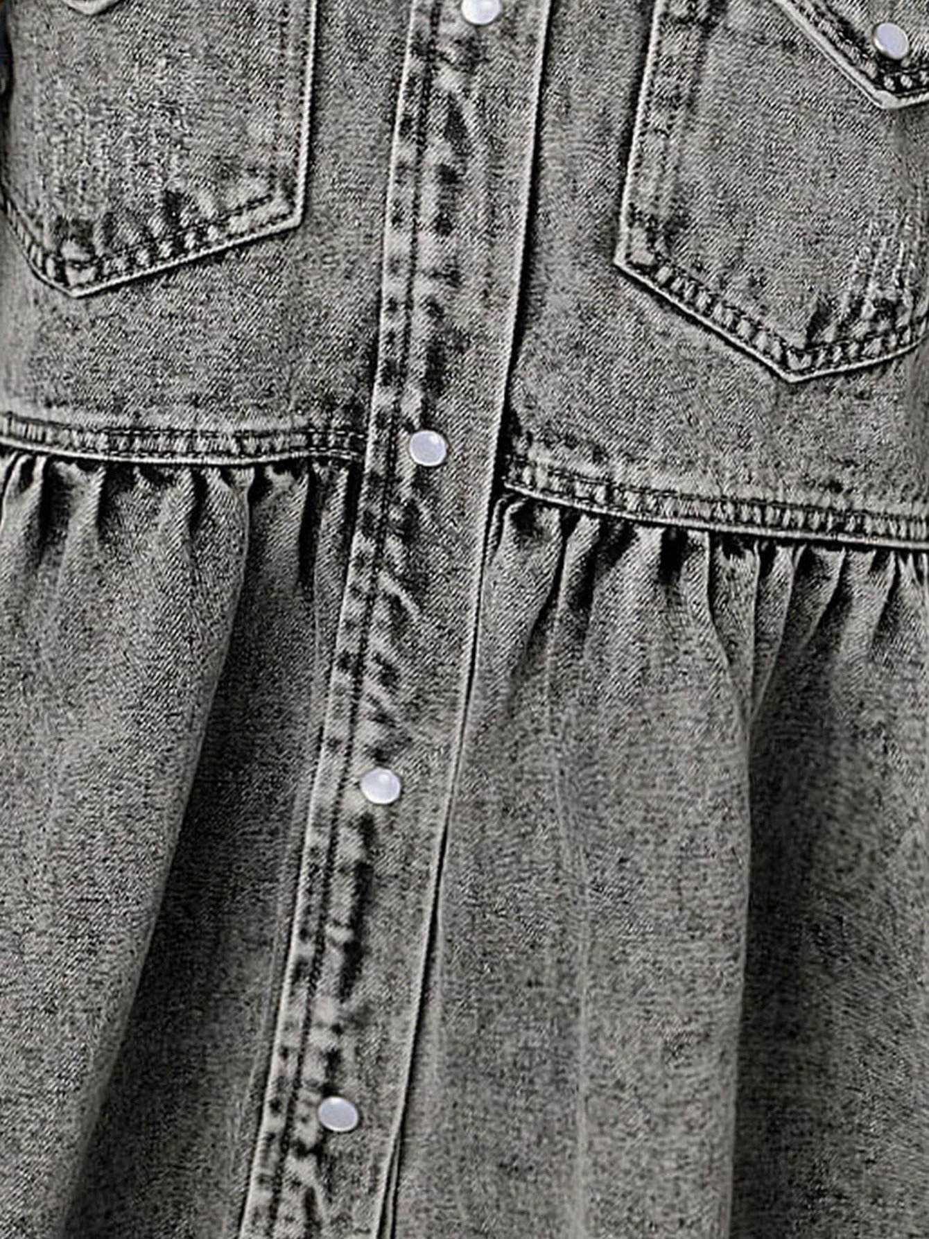 Women’s Casual Long Sleeve Denim Button Down Shirt, Ruffled-Hem Denim Jacket