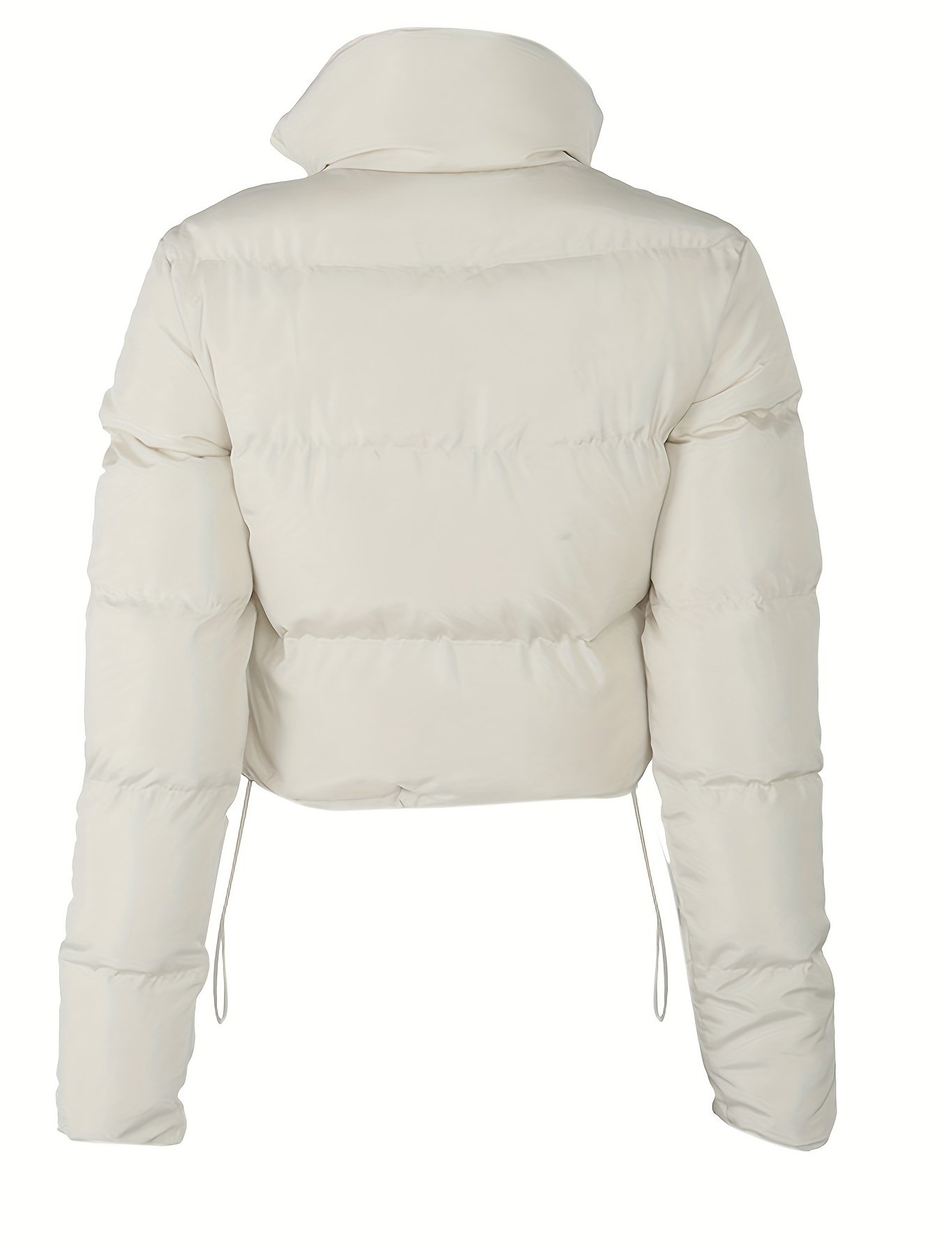 Zipper Warm Puffer Jackets For Winter Hiking Ski, Solid Color Crop Puffer Coat, Women’s Clothing for Koningsdag/King’s Day